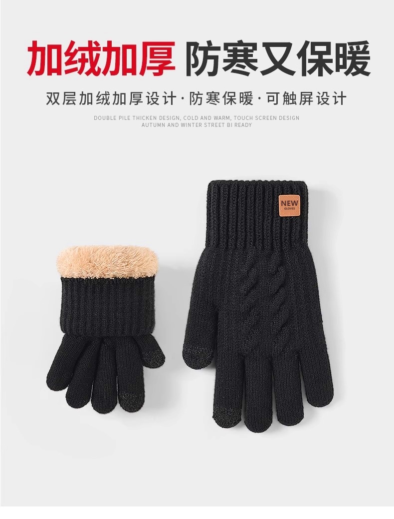2025 더블 레이어 두꺼운 벨벳 겨울 터치 스크린 장갑 따뜻하고 내한성 남성용 니트 장갑 야외 사이클링 장갑스토어 가기