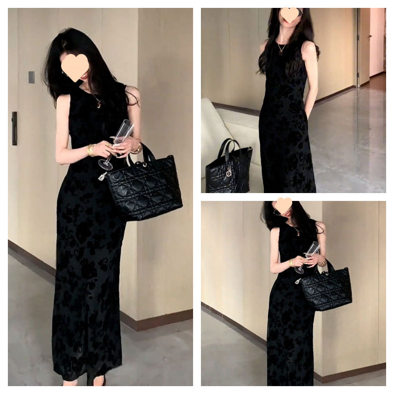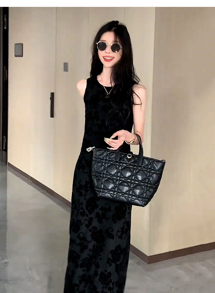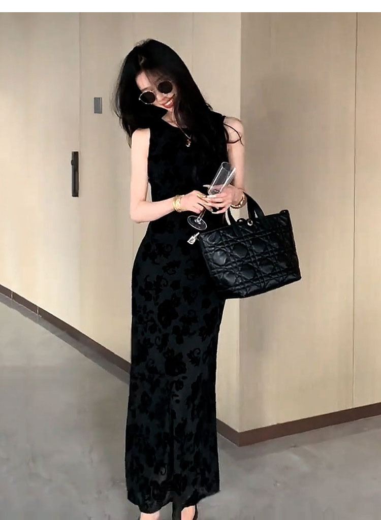 고급스럽고 나이를 줄여주는 민소매 어깨 입체 메쉬 버닝 플라워 드레스 2025 여름 신작 여성복 슬림하고 패셔너블스토어 가기