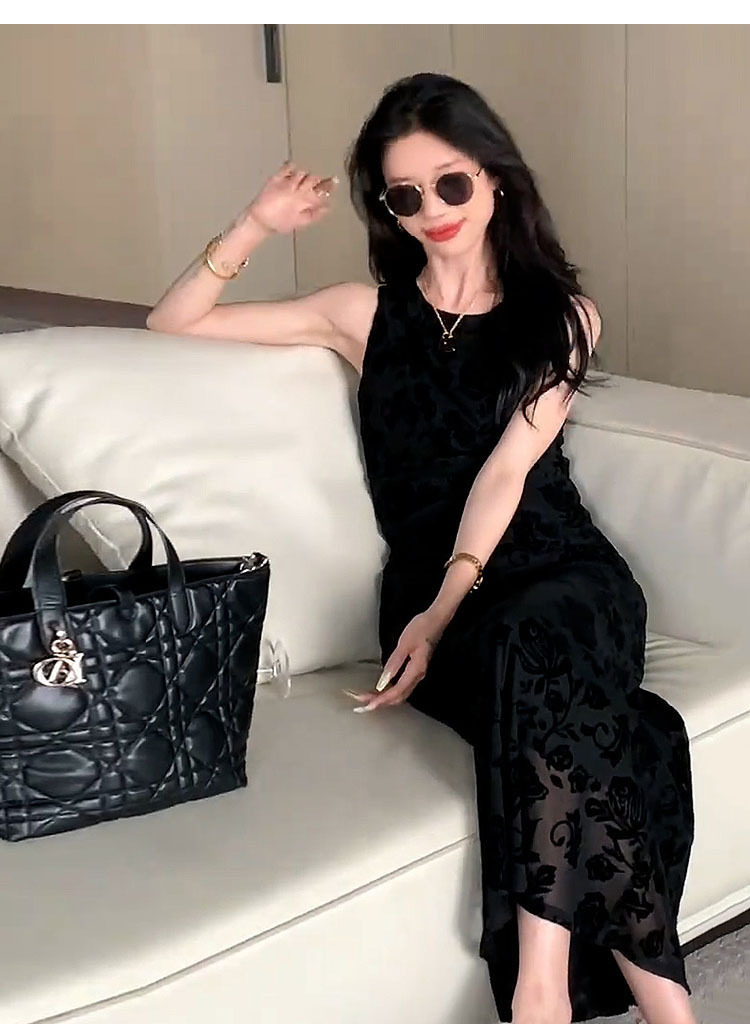 고급스럽고 나이를 줄여주는 민소매 어깨 입체 메쉬 버닝 플라워 드레스 2025 여름 신작 여성복 슬림하고 패셔너블