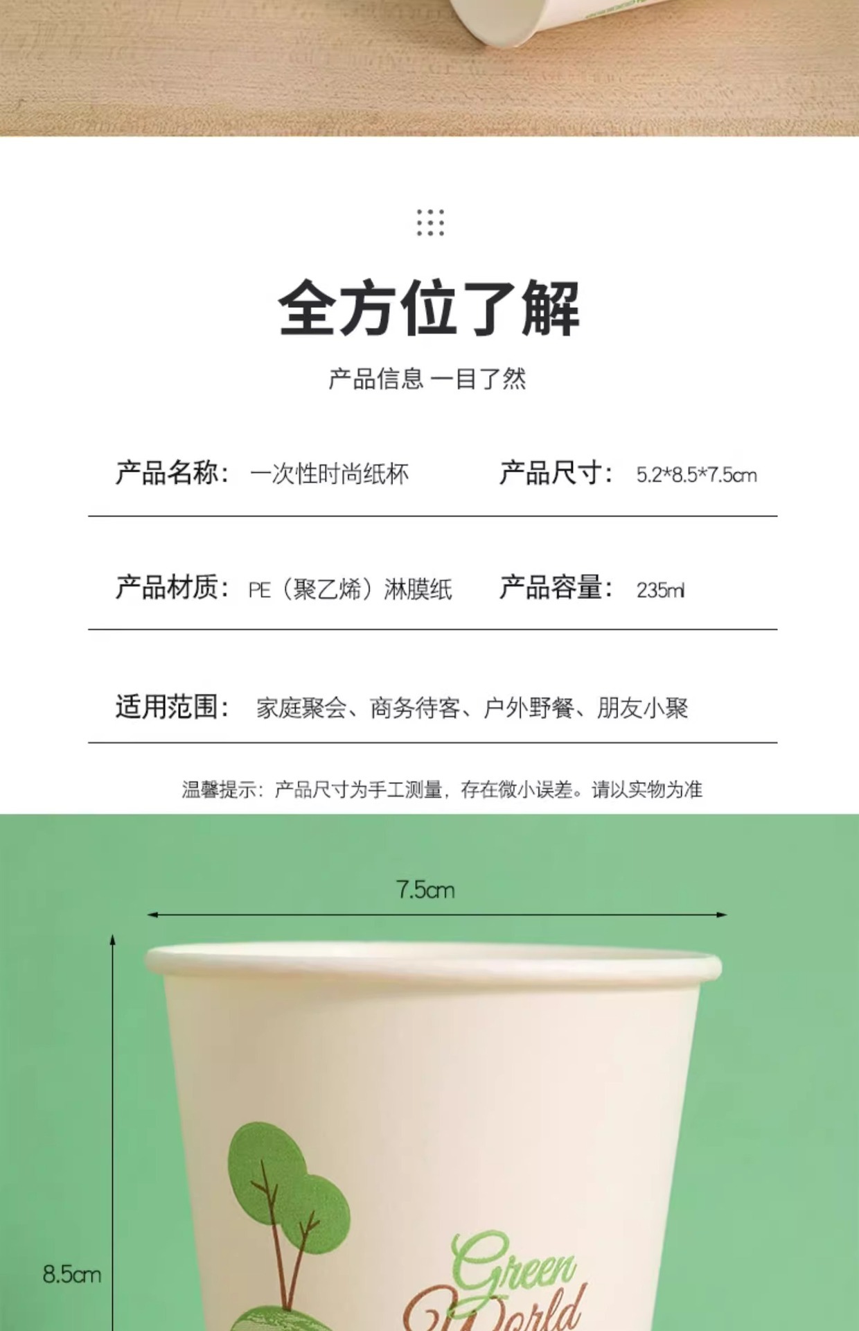 일회용 종이컵 두꺼운 가정용 물컵 50개 사무실 상업용 뜨거운 음료 커피 우유 차 주스 차 종이컵
