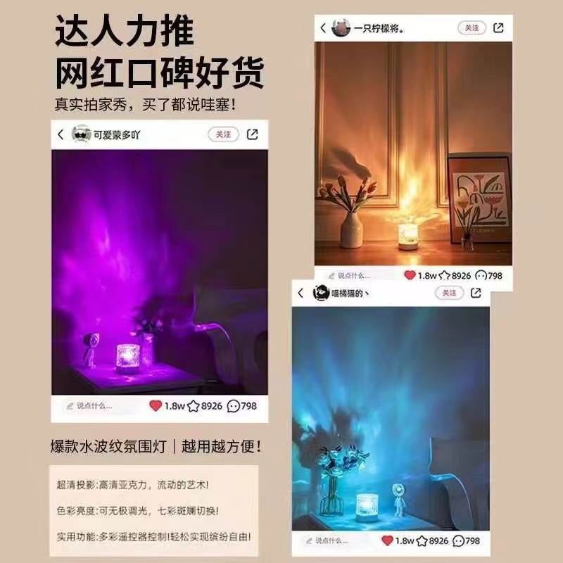 인터넷 연예인 꿈꾸는 물결 무늬 빛과 그림자 램프 라이브 방송 배경 동적 분위기 램프 침실 머리맡 거실 레스토랑 야간 조명스토어 가기