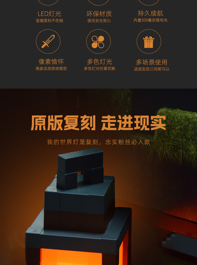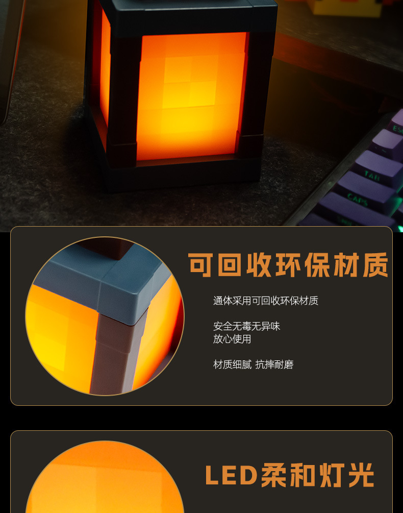 마인크래프트 토치 램프 MC 게임 주변기기 토치 라이트 장난감 모델 분위기 야간등 장식 벽등