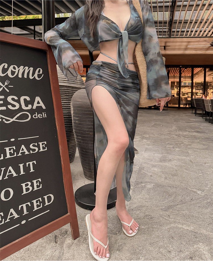 롱 스커트 비키니 수영복 여성 신작 스플릿 4피스 롱 스커트 섹시한 유럽과 미국의 슬리밍 온천 수영복