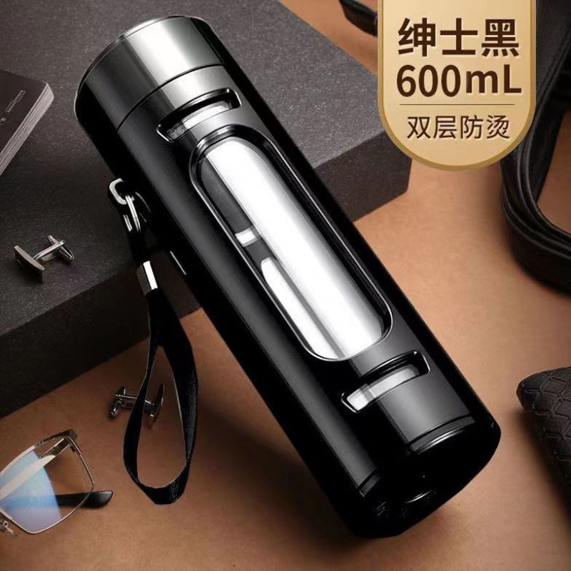 차와 물 분리 찻잔 대용량 이중층 유리 간단한 컵 남성용 휴대용 물컵스토어 가기