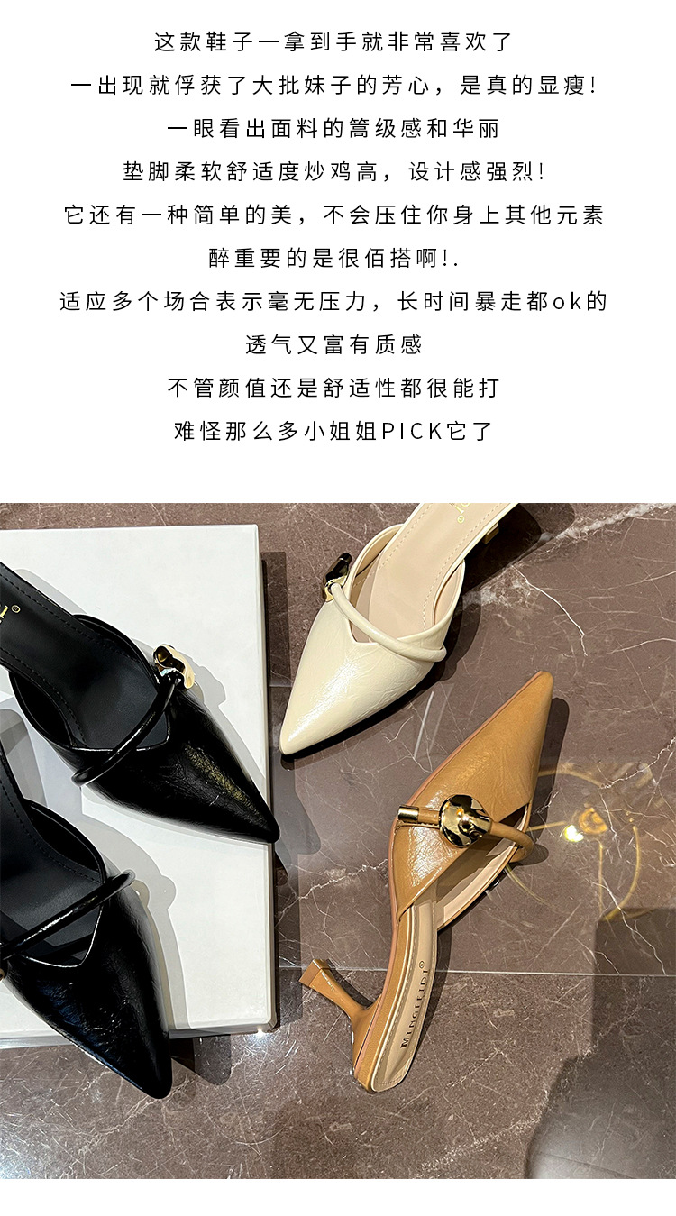 2025년 신상 여름 아우터 바오터우 하프 슬리퍼, 버클이 달린 여성용 스틸레토 하이힐 샌들, 포인티드 토, 다용도스토어 가기