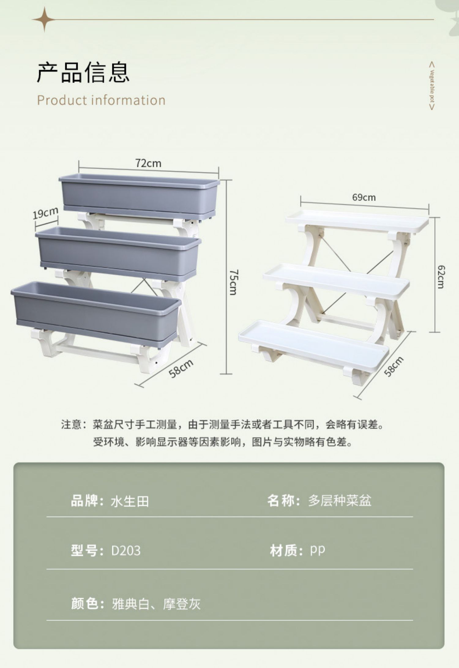 초대형 화분, 가정용 플라스틱 야채 상자, 꽃 상자, 직사각형 다층 꽃 스탠드, 발코니 야채 선반 심기