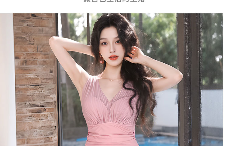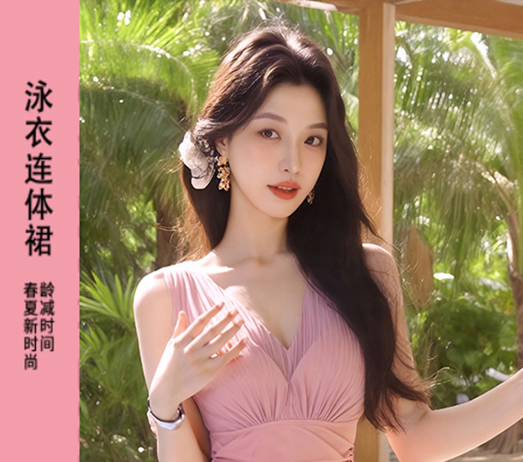 여성용 수영복 2025 새로운 스타일 온천 ins 스타일 슬리밍 배 커버 보수적 인 v 넥 스커트 스타일 원피스 대형 수영복스토어 가기