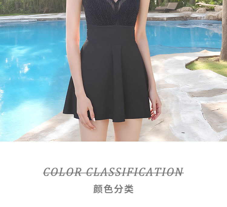 여성용 수영복 2025 새로운 스타일 온천 ins 스타일 슬리밍 배 커버 보수적 인 v 넥 스커트 스타일 원피스 대형 수영복