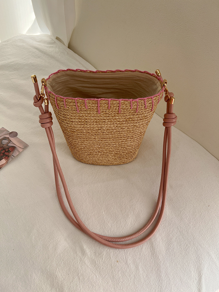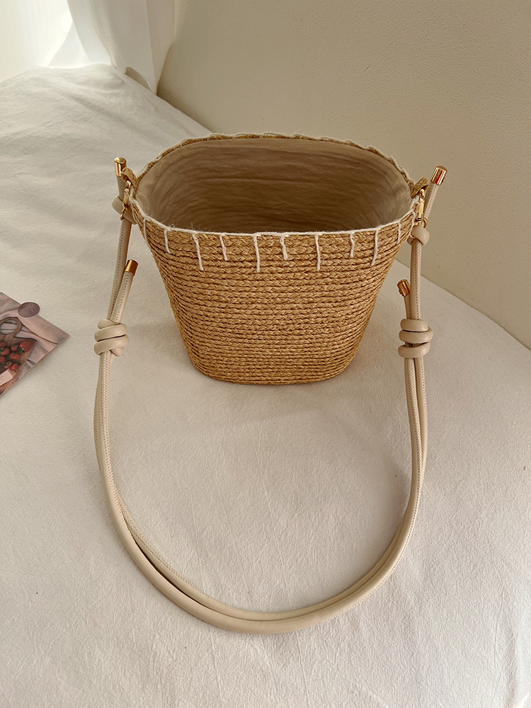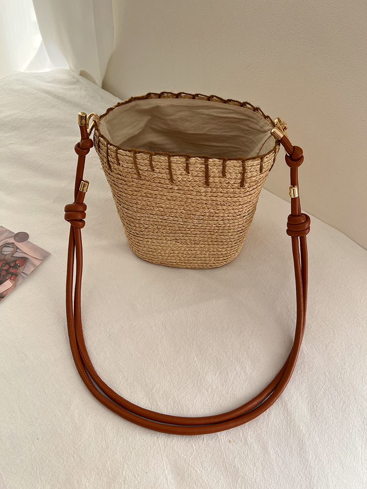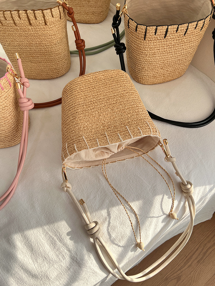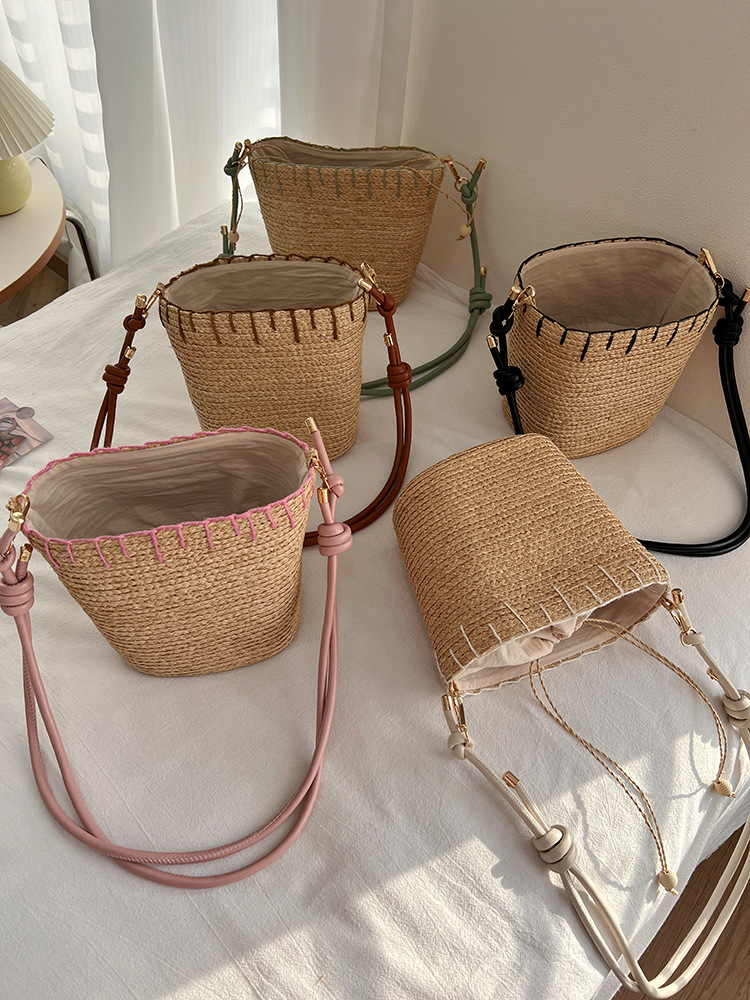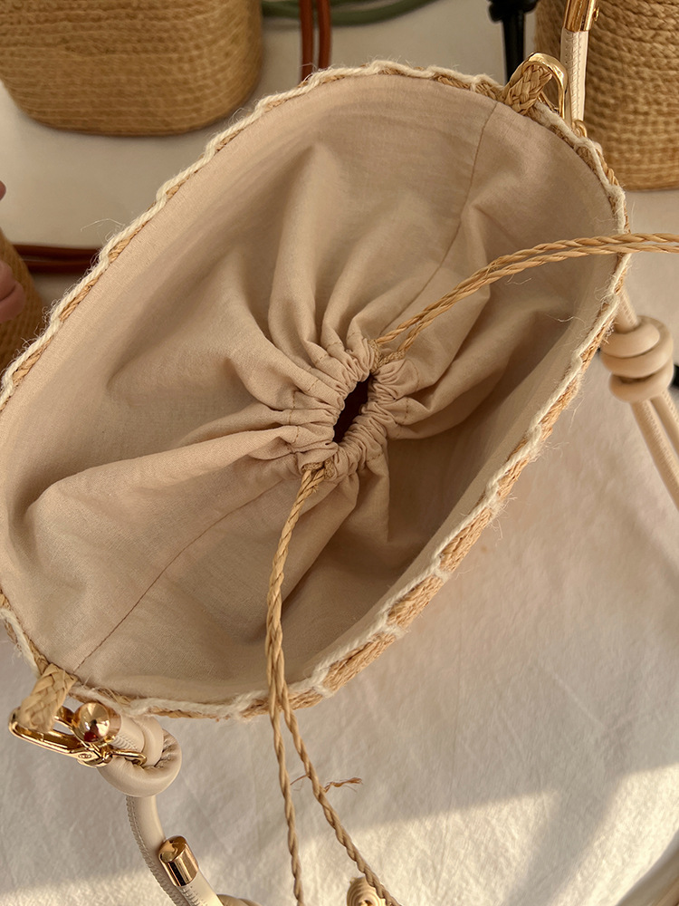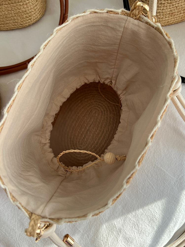 여름 야외 태양 보호 빈 탑 밀짚 모자 해변 휴가 스타일 비치 숄더 백 여성을위한 수입 라피아 가방 및 모자스토어 가기