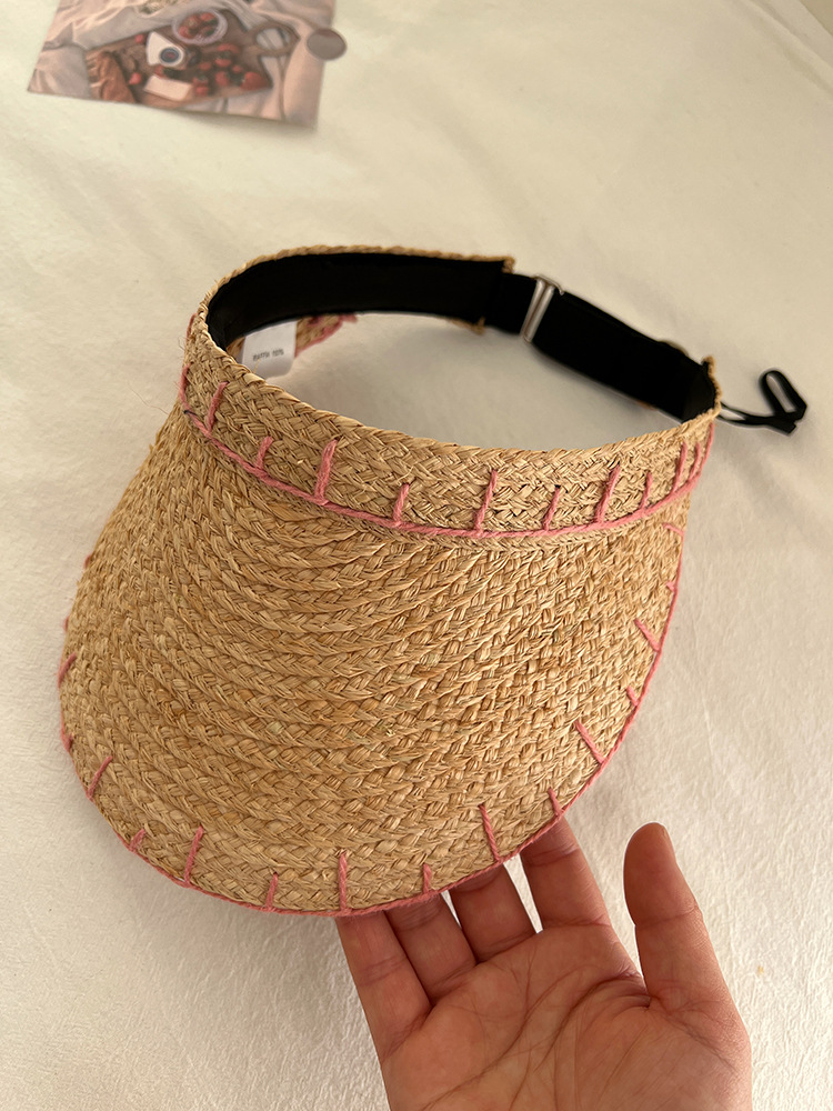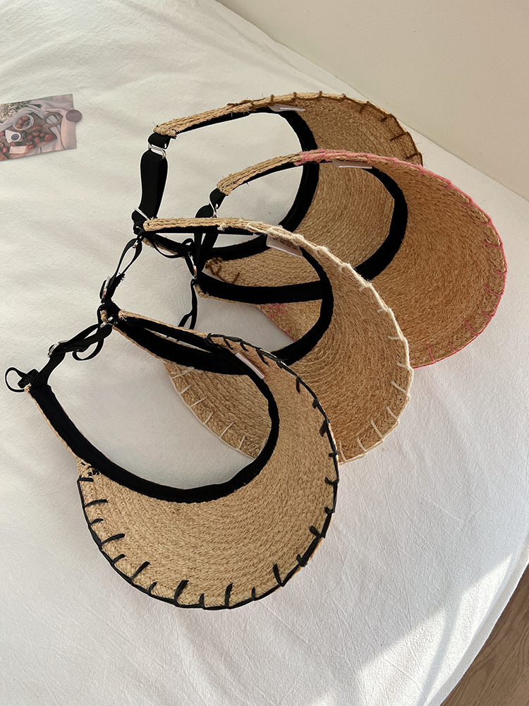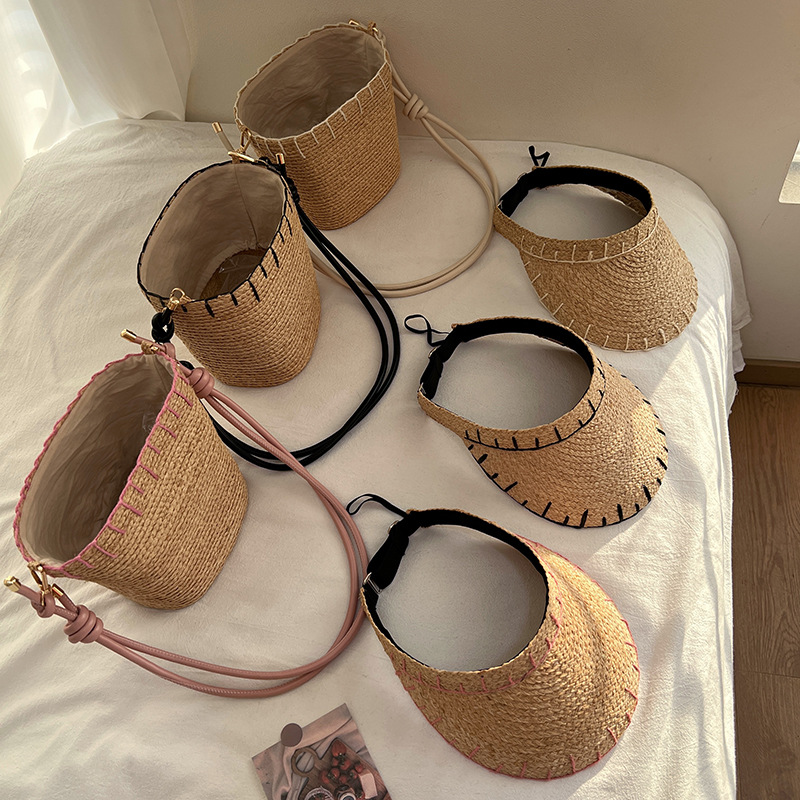 进口拉菲草包包帽子女夏季户外遮阳空顶草帽海边度假风沙滩单肩包