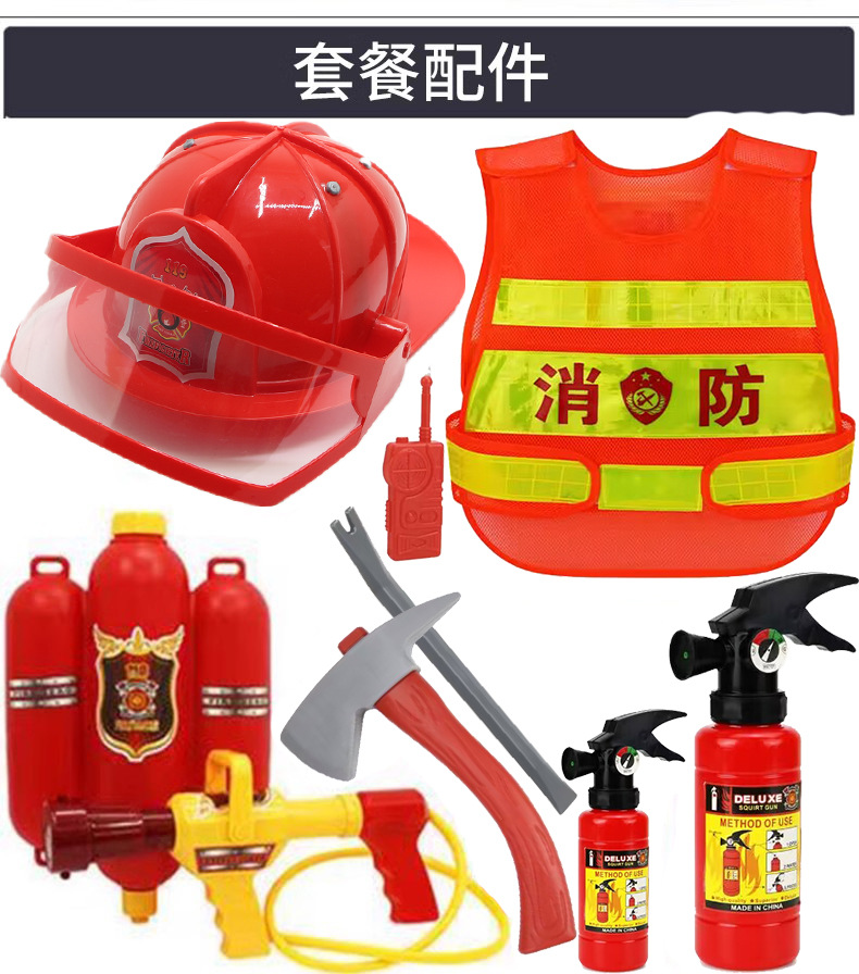 어린이 소방관 옷, 어린이 롤 플레잉 의상, 유치원 의상, 소방 모자, 조끼, 장난감 세트