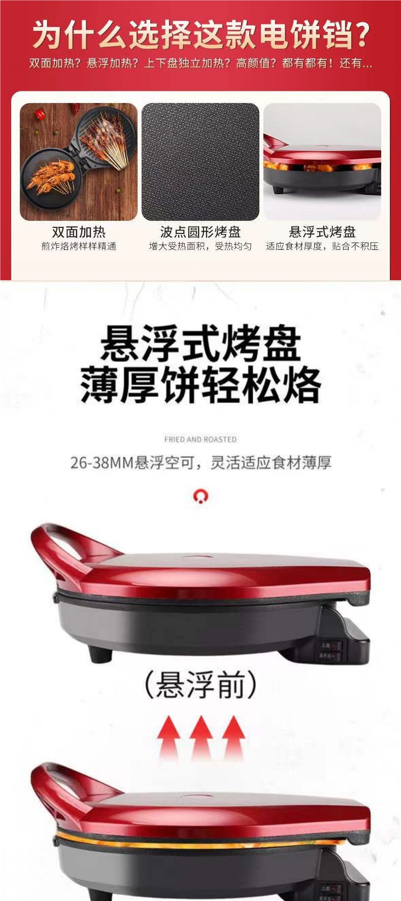 무료 배송 전기 베이킹 팬 가정용 양면 가열, 깊고 다기능 전기 베이킹 팬케이크 팬 팬케이크 기계 팬케이크 팬스토어 가기