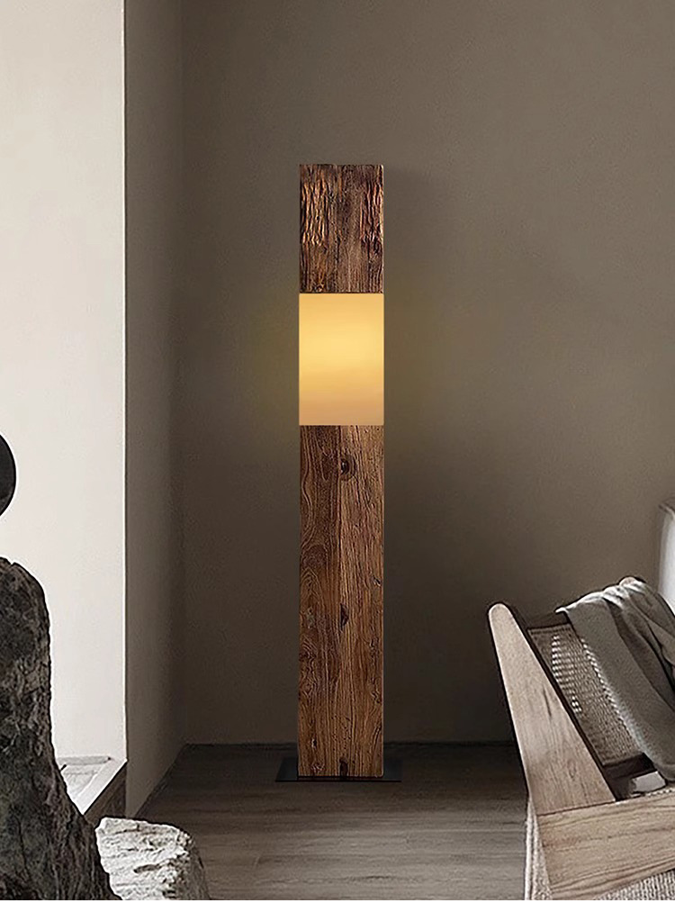 통나무 플로어 램프, 와비사비 스타일, 거실 소파 옆, 고급스럽고 고급스러운 분위기, 침실 중고 디자이너 수직 램프