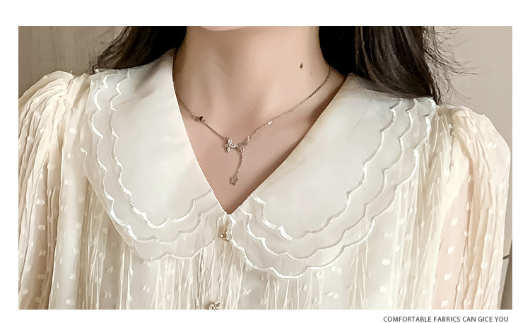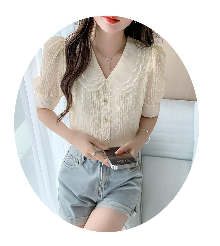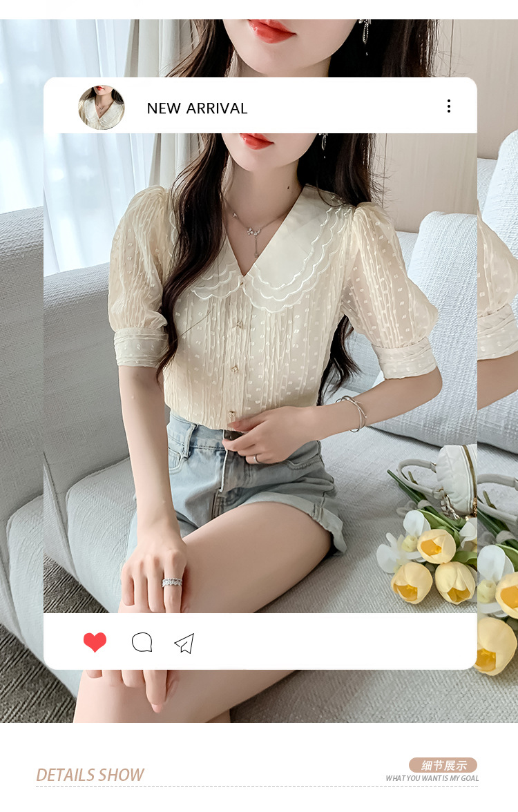 2025년 여름 여성을 위한 새로운 반팔 인형 칼라 쉬폰 셔츠, 달콤한 기질, 연령 감소 퍼프 슬리브 틈새 상의스토어 가기
