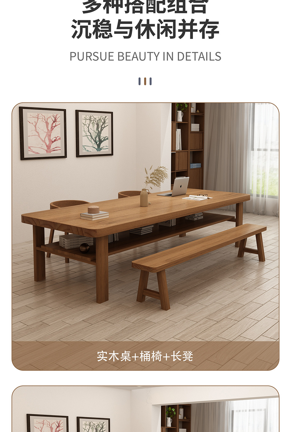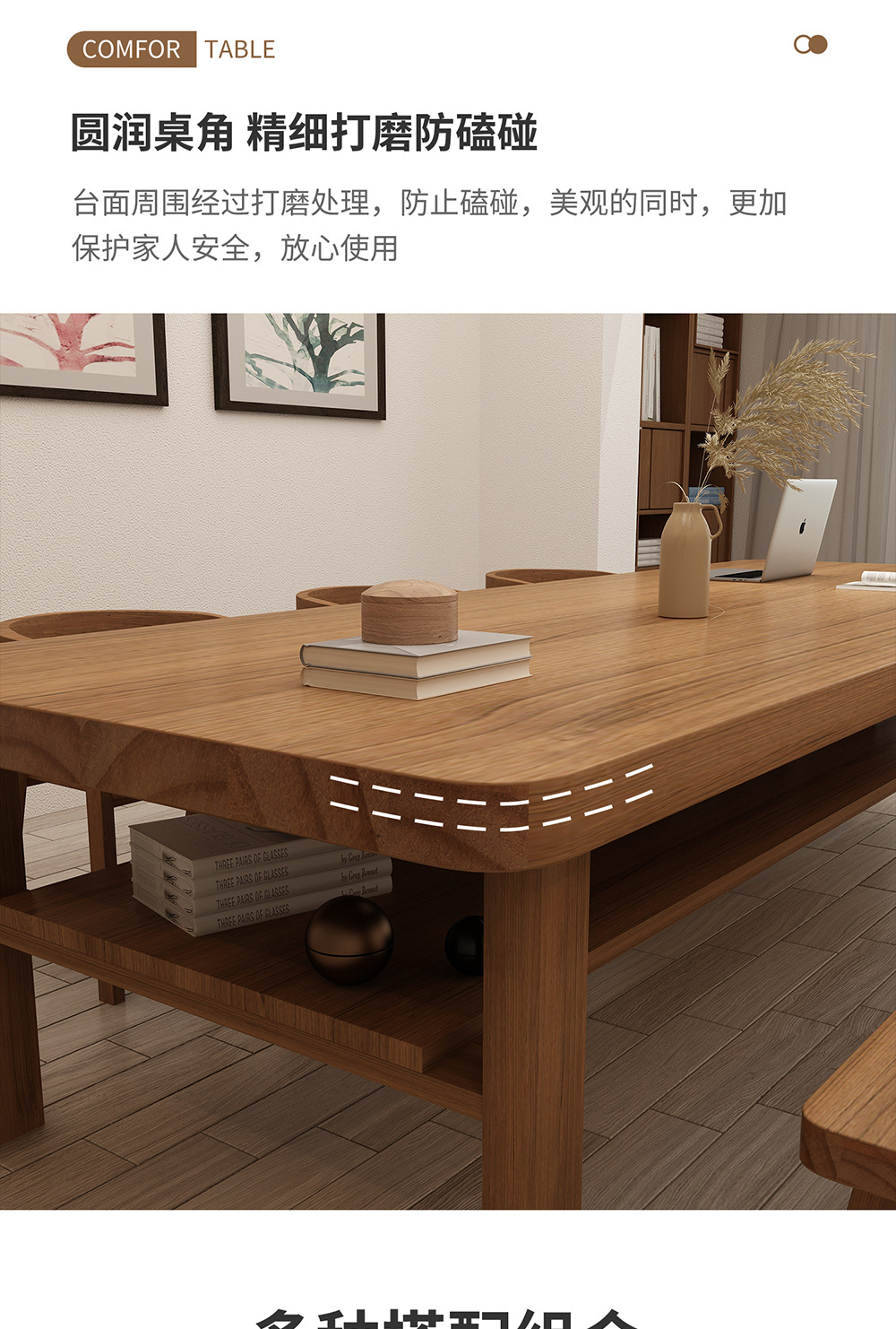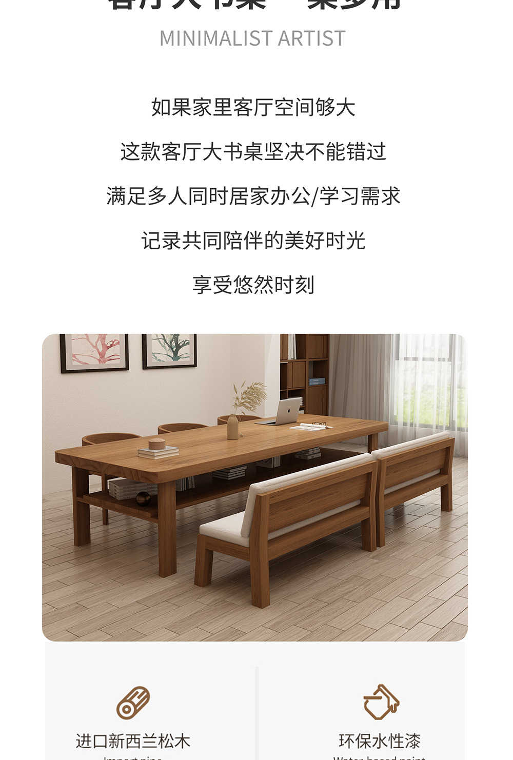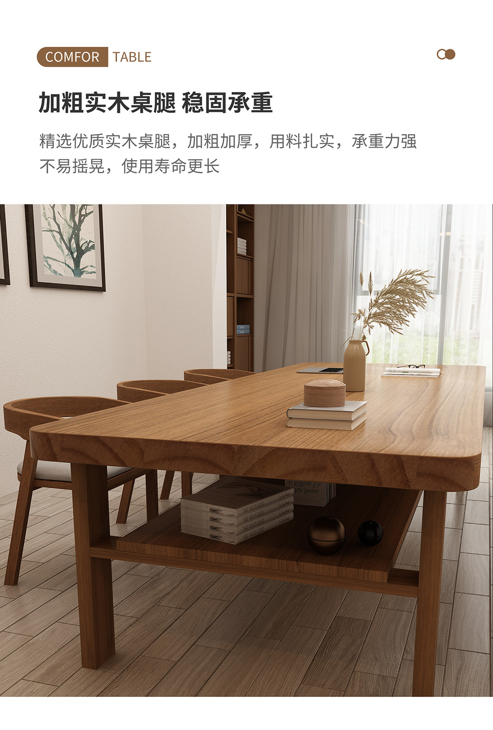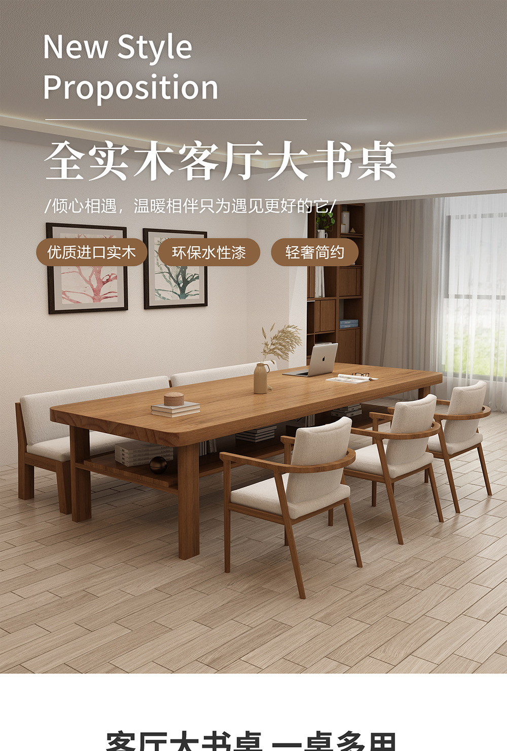 거실용 원목 책상, 심플하고 모던한 가정용 학생 학습용 책상, 사무실 책상, 컴퓨터 책상, 작업대