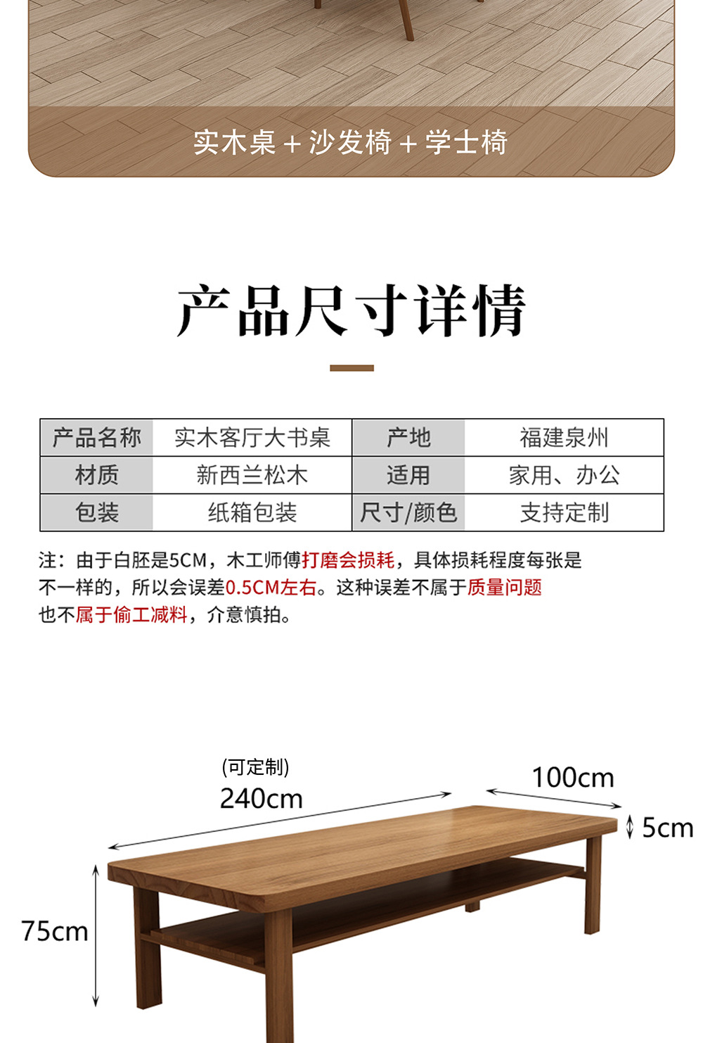 • 단일 테이블: 240*100*75cm 보드 두께 5cm