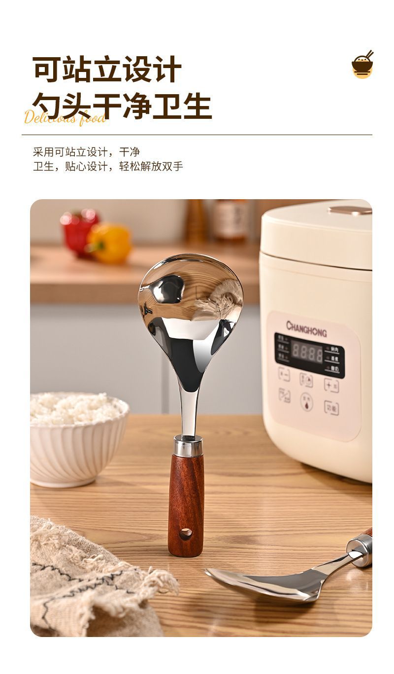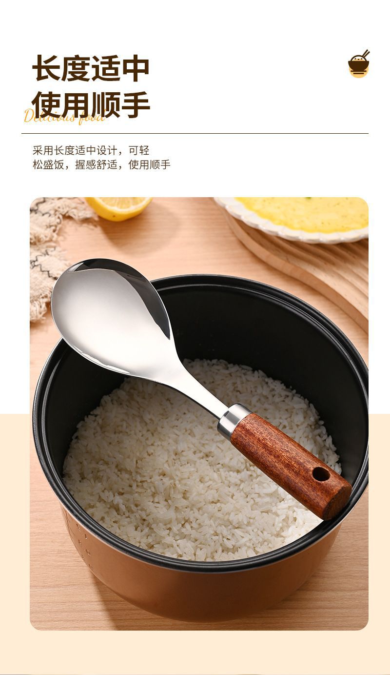 나무 손잡이 밥숟가락, 밥이 달라붙지 않음, 전기밥솥에 세워서 밥을 담을 수 있음, 밥이 달라붙지 않음, 가정용, 구내식당용 밥삽