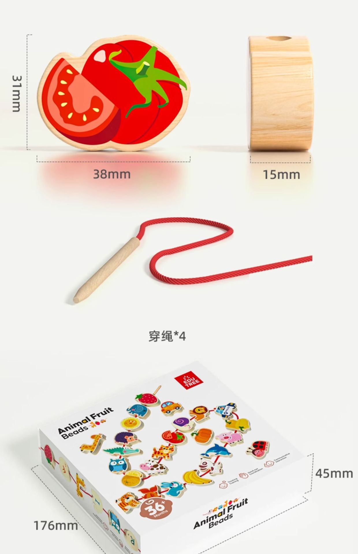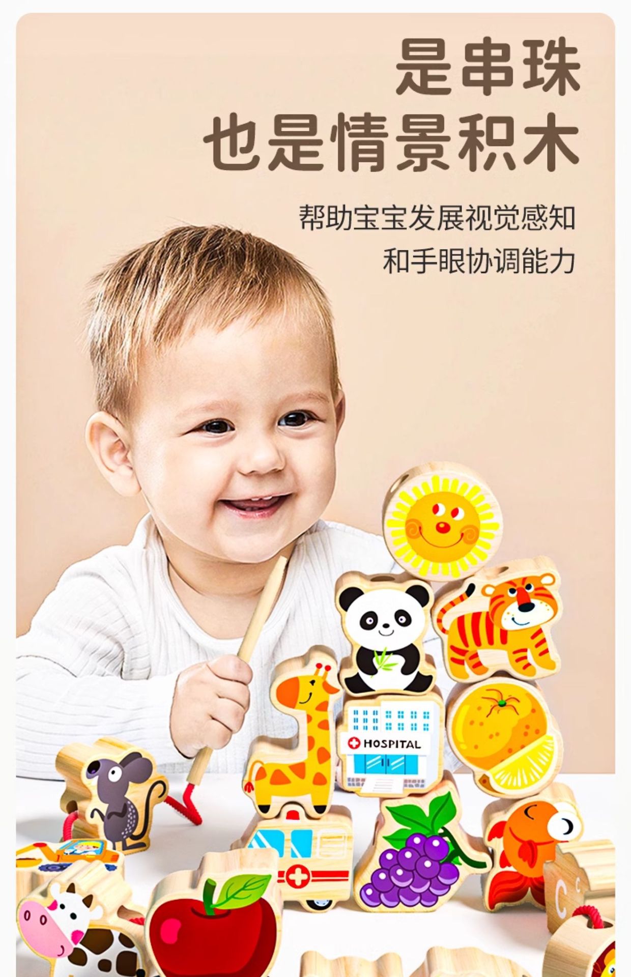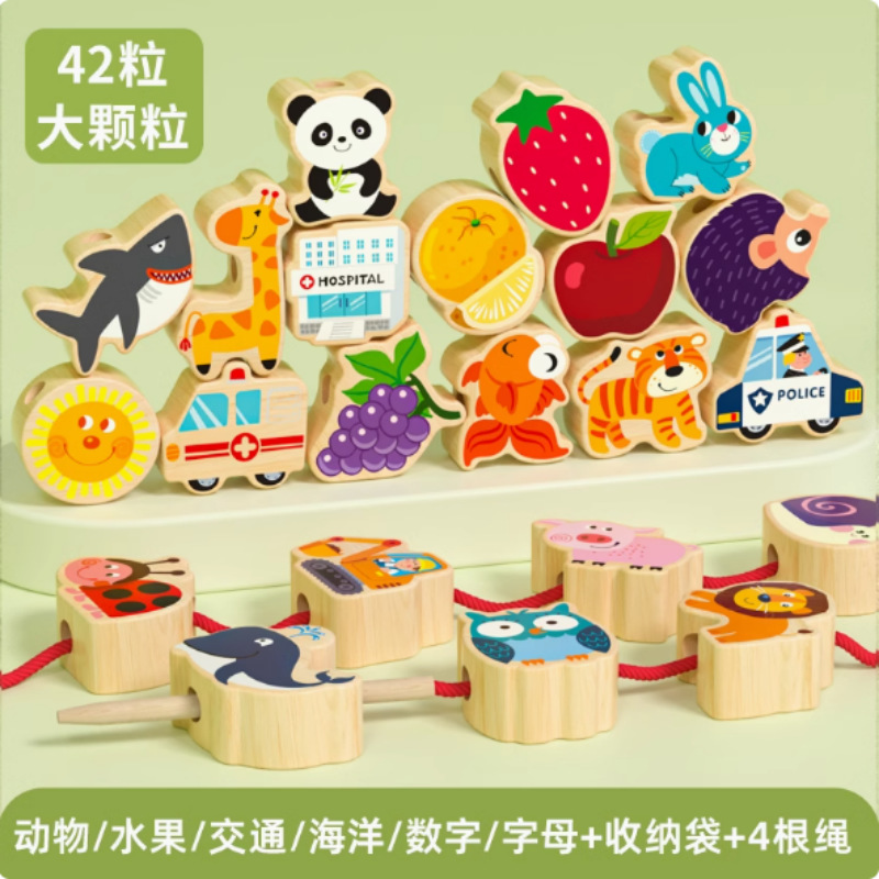 단단한 나무 구슬 어린이 장난감 대형 입자 구슬 훈련 아기 몬테소리 조기 교육 교육 장난감 교육 보조 빌딩 블록스토어 가기