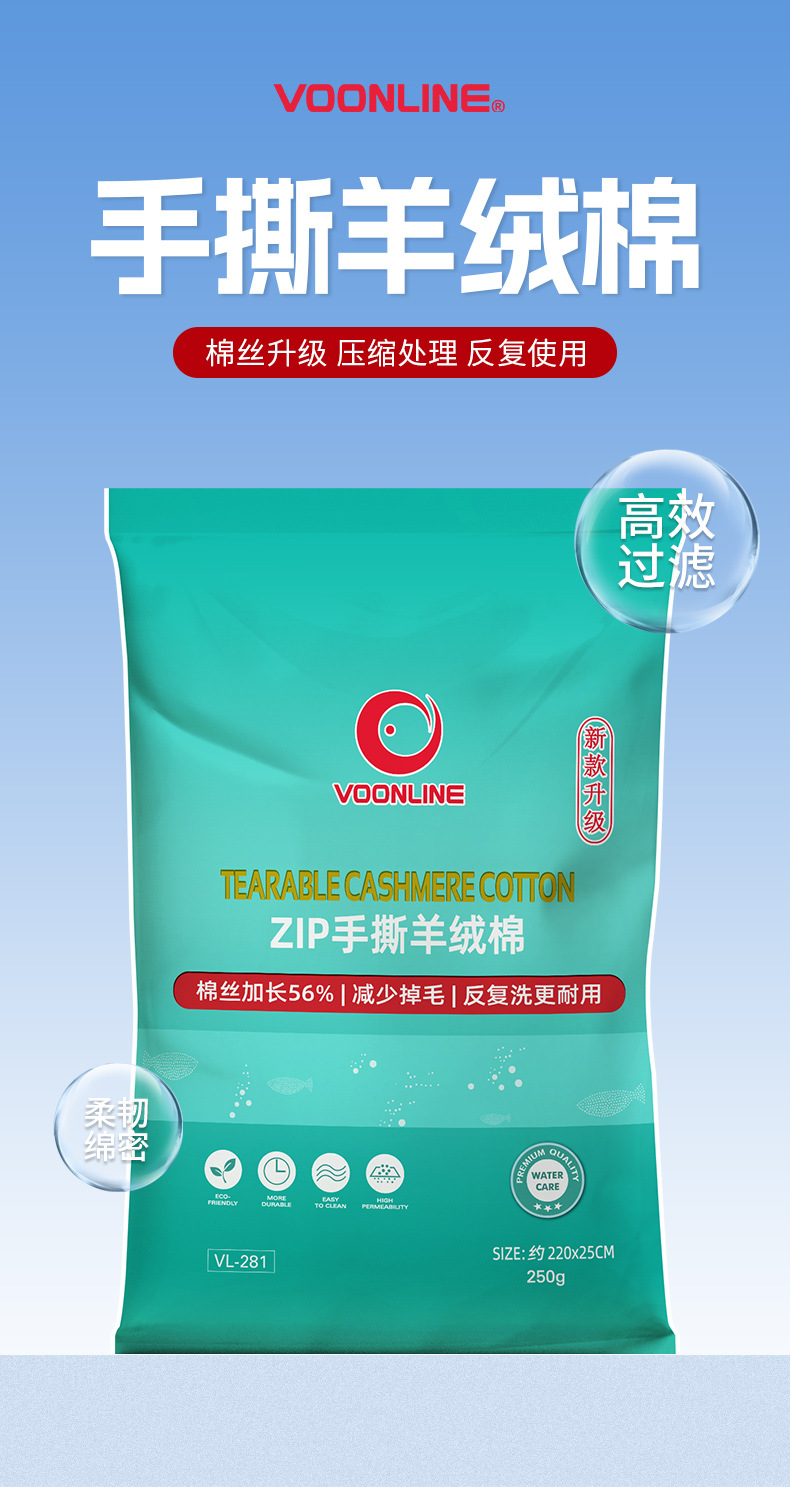 Woveland 손으로 찢은 캐시미어 면 필터 면 수족관 물고기 탱크 면 고투수성 면 수족관 비 막힘 물 밀도