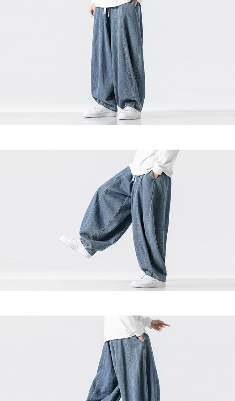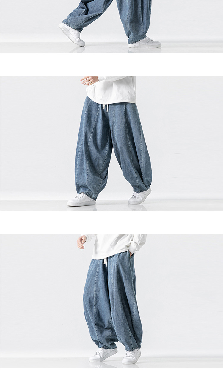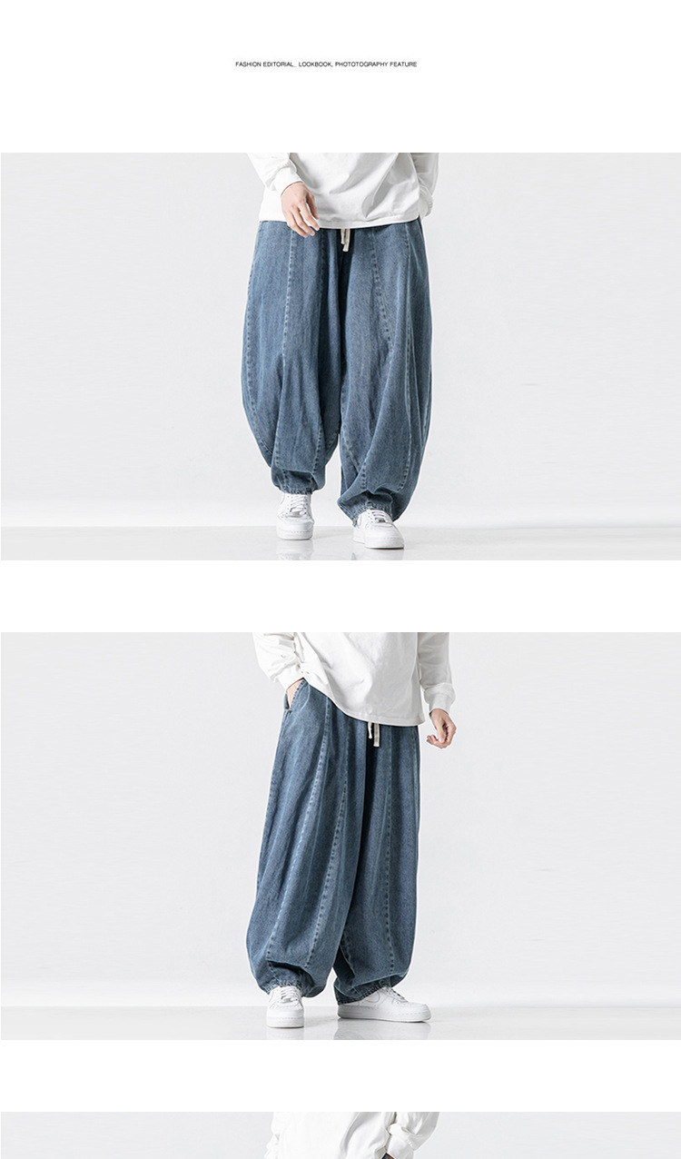 공장 직접 공급 남성용 대형 일본식 루즈한 하렘 스트레이트 팬츠 와이드 레그 캐주얼 팬츠 아메리칸 청바지 블루머스토어 가기