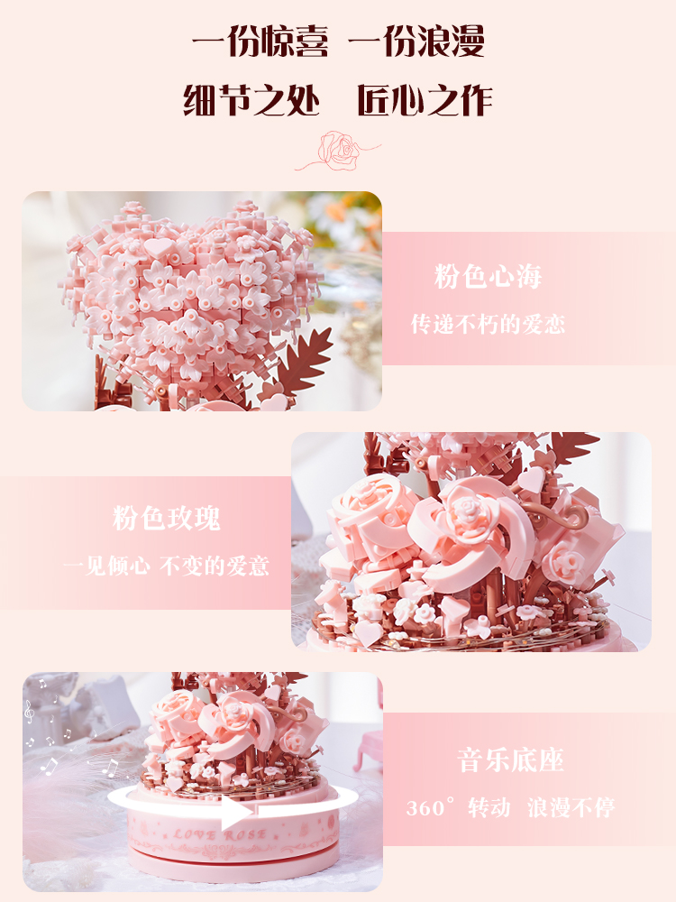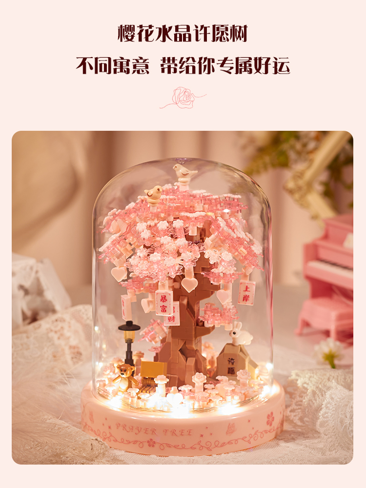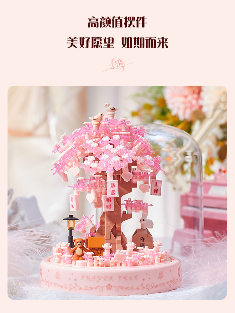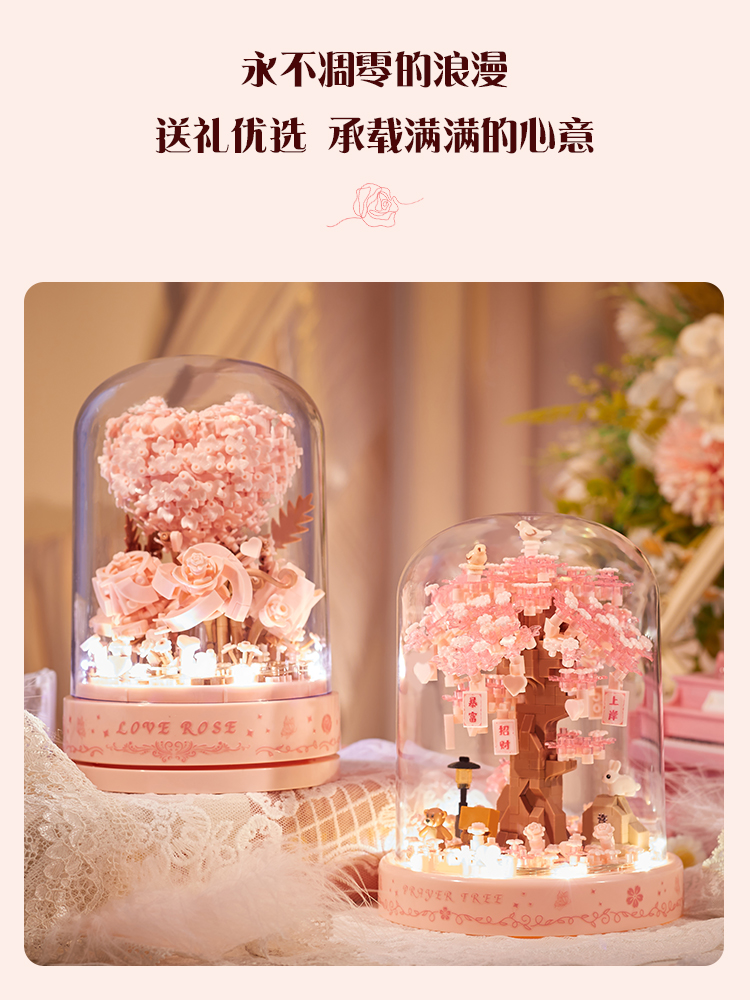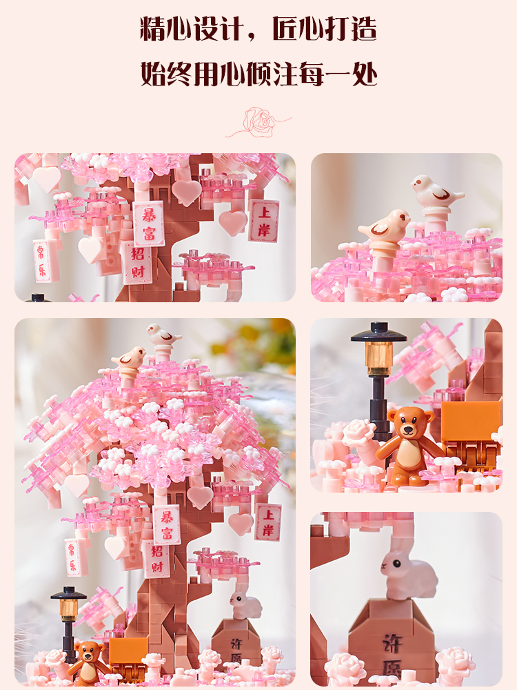 빌딩 블록 조립 꽃 성인 버전 퍼즐 트리 하우스 장식품 여자 친구 크리스마스 생일스토어 가기