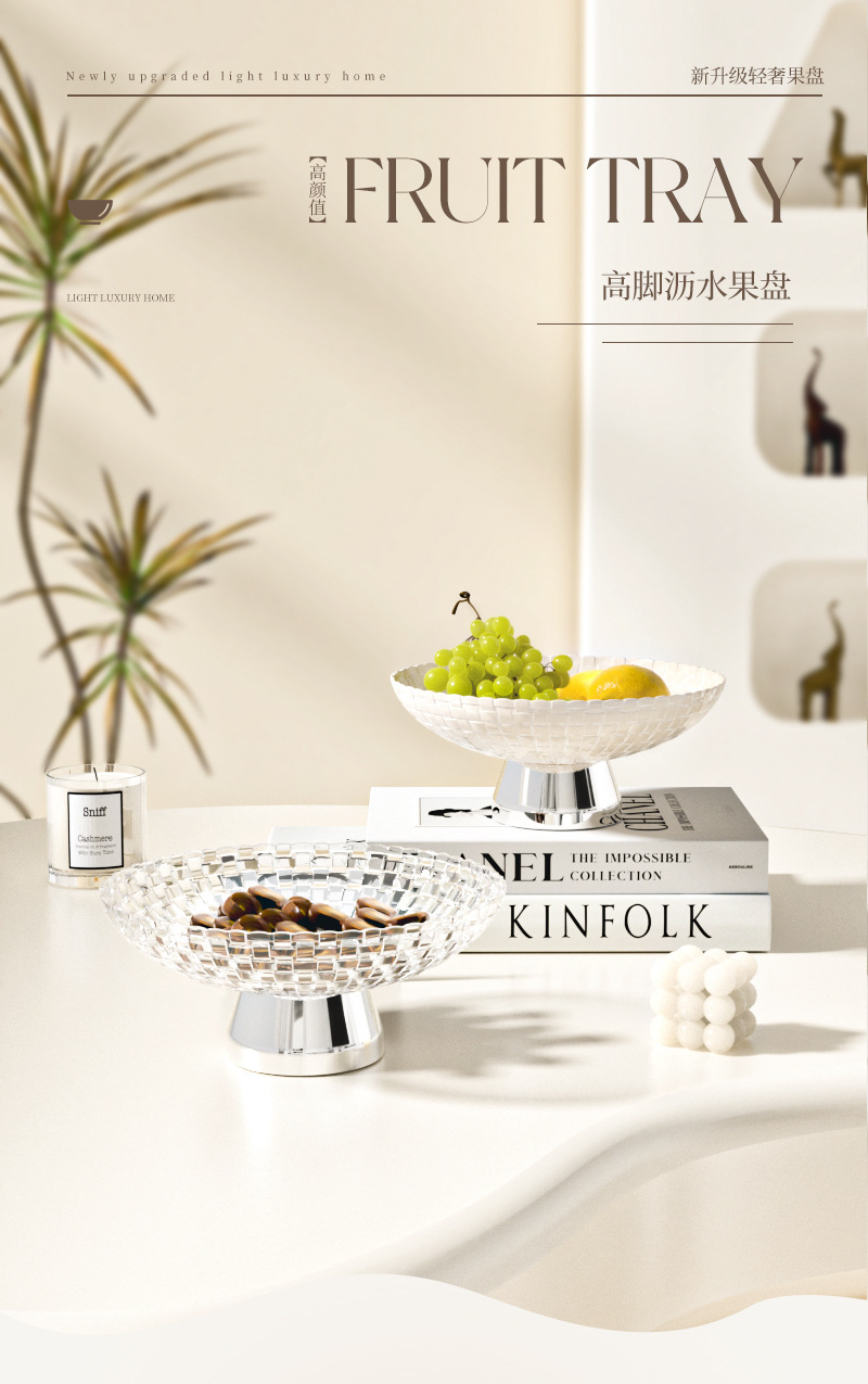 크림 스타일 과일 접시, 탈착식 배수 스낵 보관 상자, 가정 거실 장식 과일 바구니, 높은 건조 과일 및 견과류 접시스토어 가기