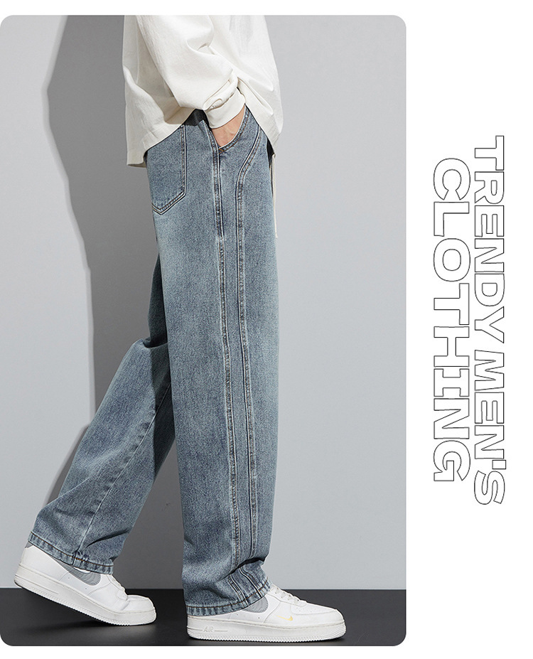 봄과 가을 루즈 스트레이트 청바지 2025 남성 아메리칸 하이 스트리트 패션 브랜드 와이드 레그 캐주얼 롱 팬츠 남성 패션스토어 가기