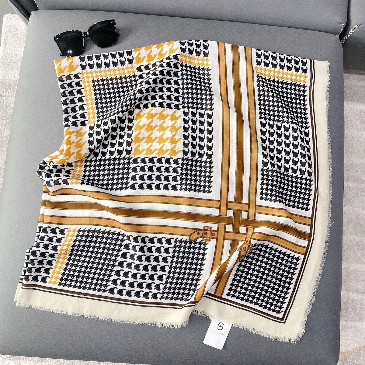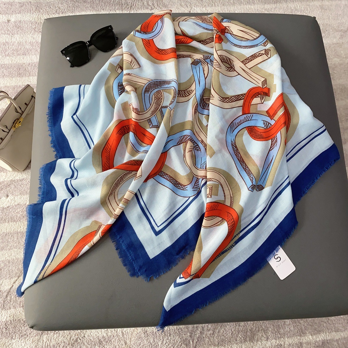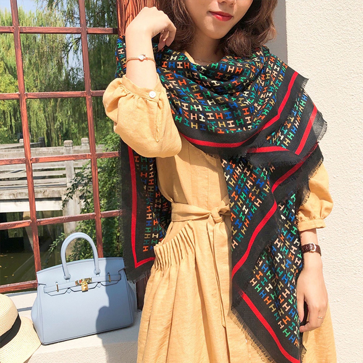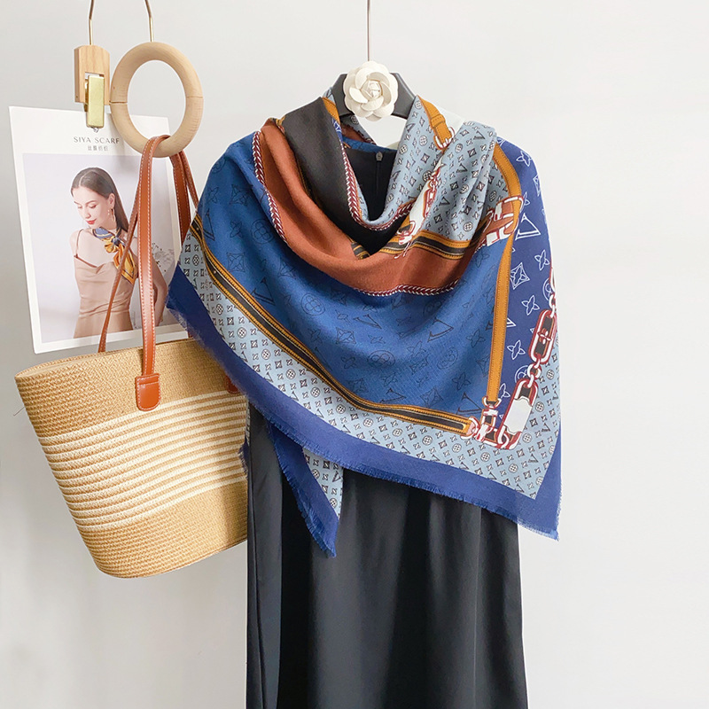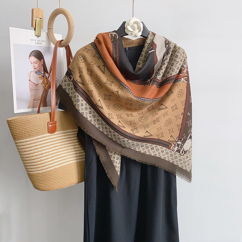 2025 봄 새로운 클래식 격자 무늬 접합 대형 사각형 스카프 패션 장식 다목적 태양 보호 인쇄 목도리 스카프 여성스토어 가기