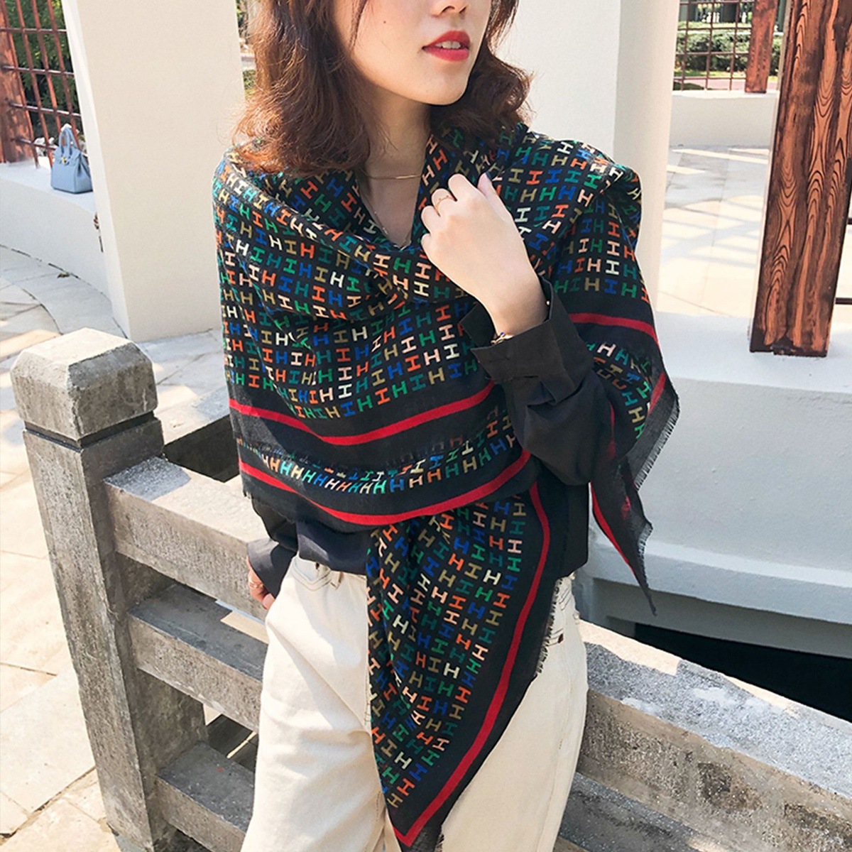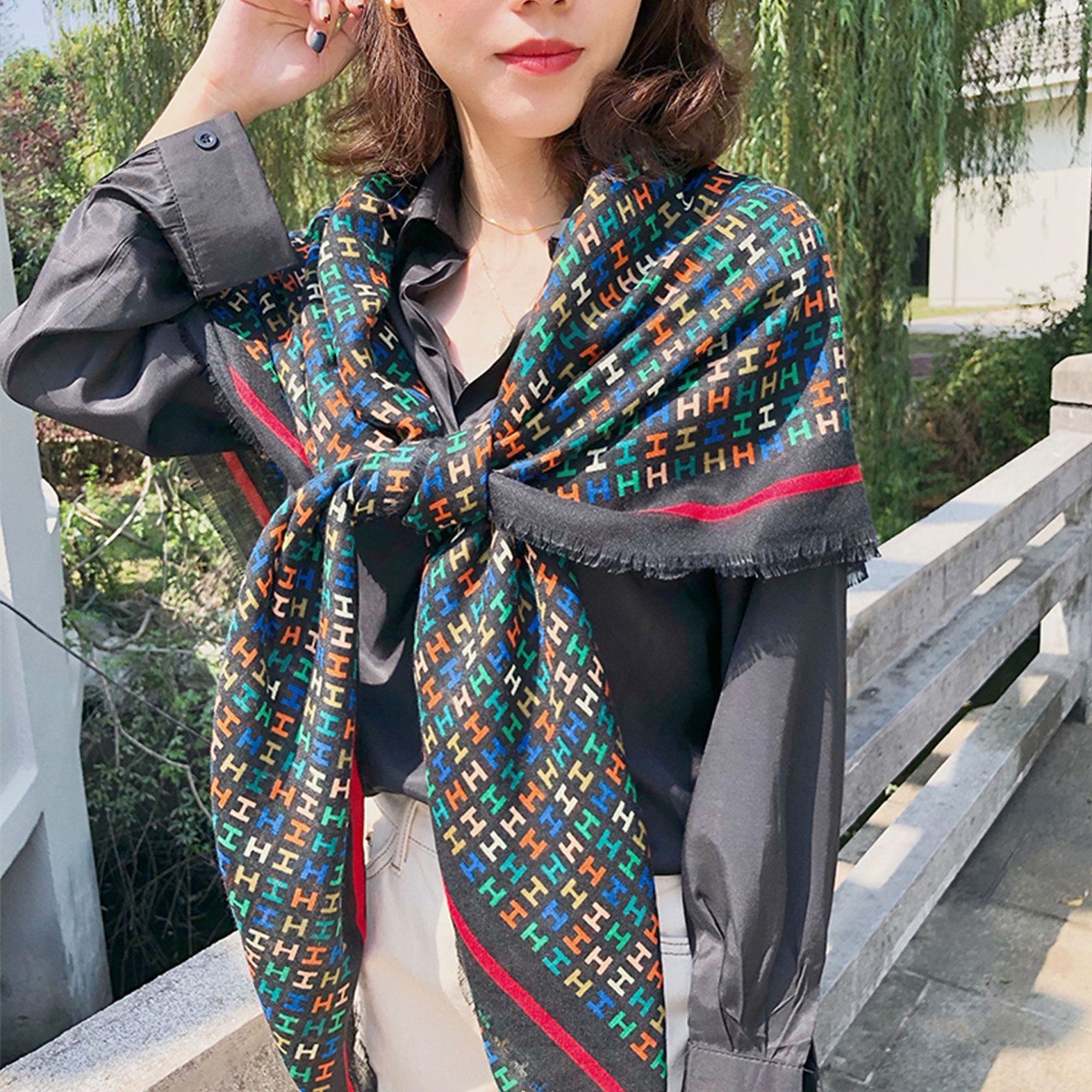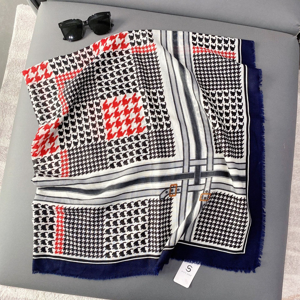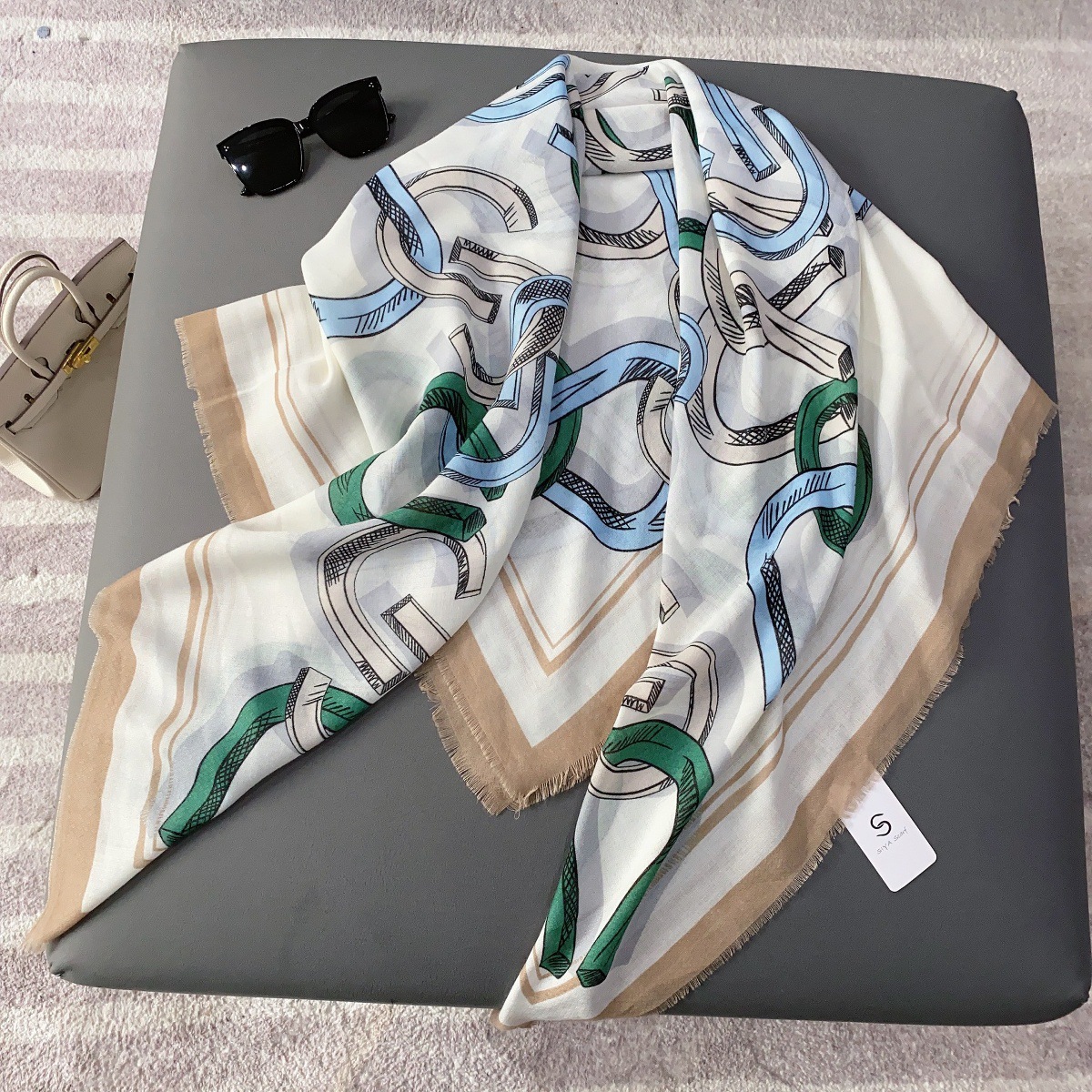 2025 봄 새로운 클래식 격자 무늬 접합 대형 사각형 스카프 패션 장식 다목적 태양 보호 인쇄 목도리 스카프 여성스토어 가기