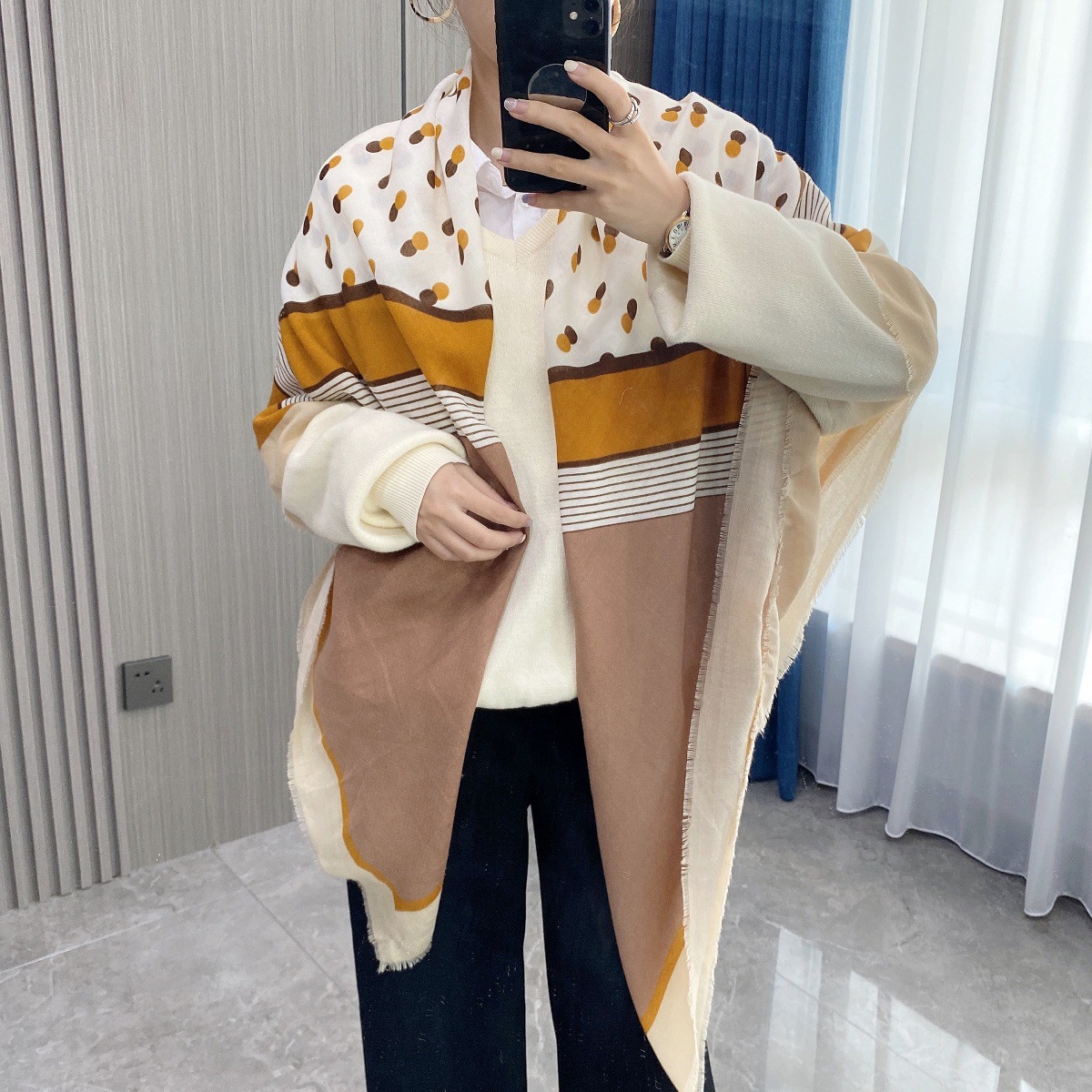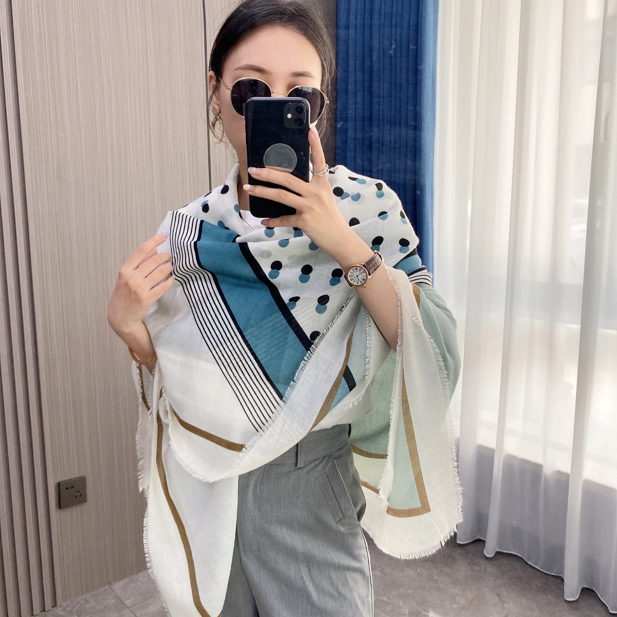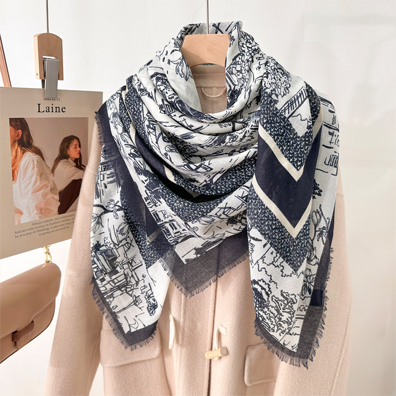 2025 봄 새로운 클래식 격자 무늬 접합 대형 사각형 스카프 패션 장식 다목적 태양 보호 인쇄 목도리 스카프 여성