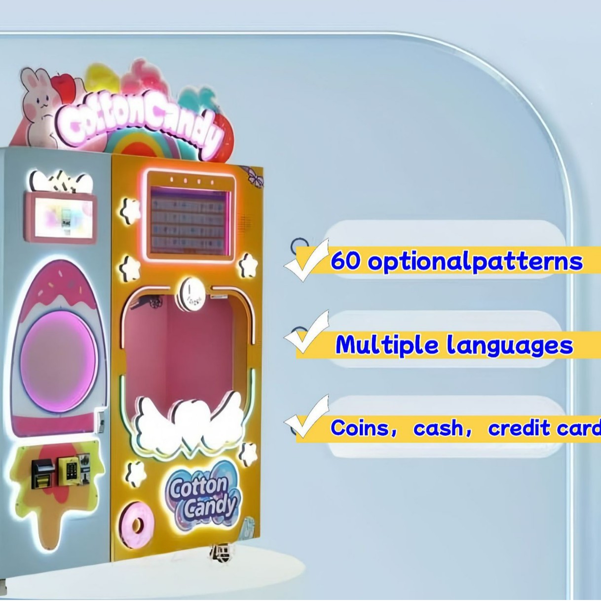 완전 자동 마시멜로 기계 상업용 동전으로 작동되는 무인 자동 판매기 60가지 색상 현금 및 신용 카드 스크래치 창업