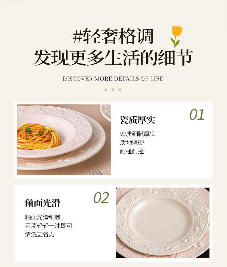 가벼운 럭셔리 스타일 양각 딸기 그릇과 접시 세트, 고급스러운 소녀 하트 인터넷 연예인 세라믹 식기 세트 그릇과 접시 세트스토어 가기