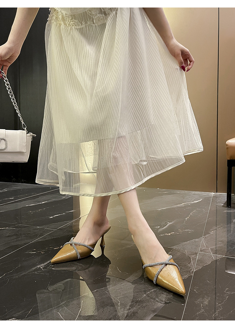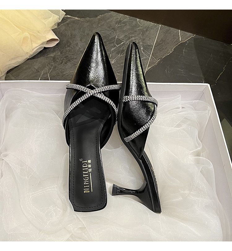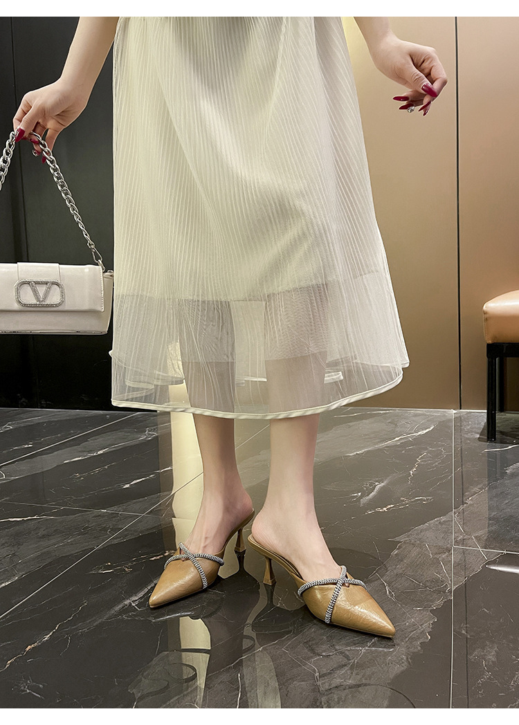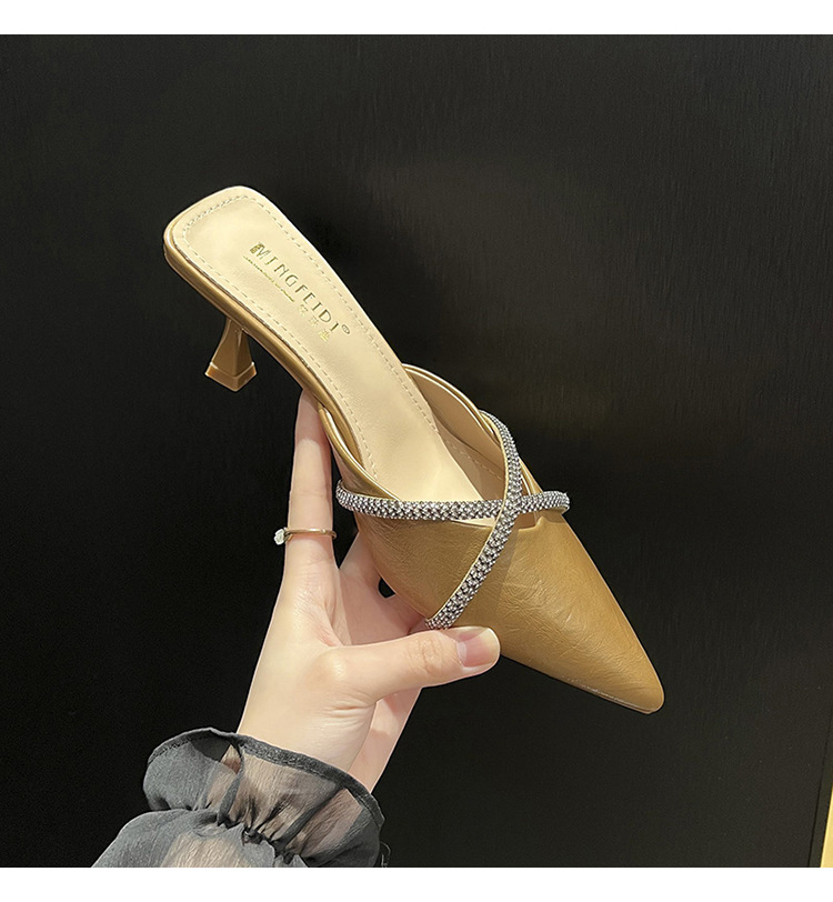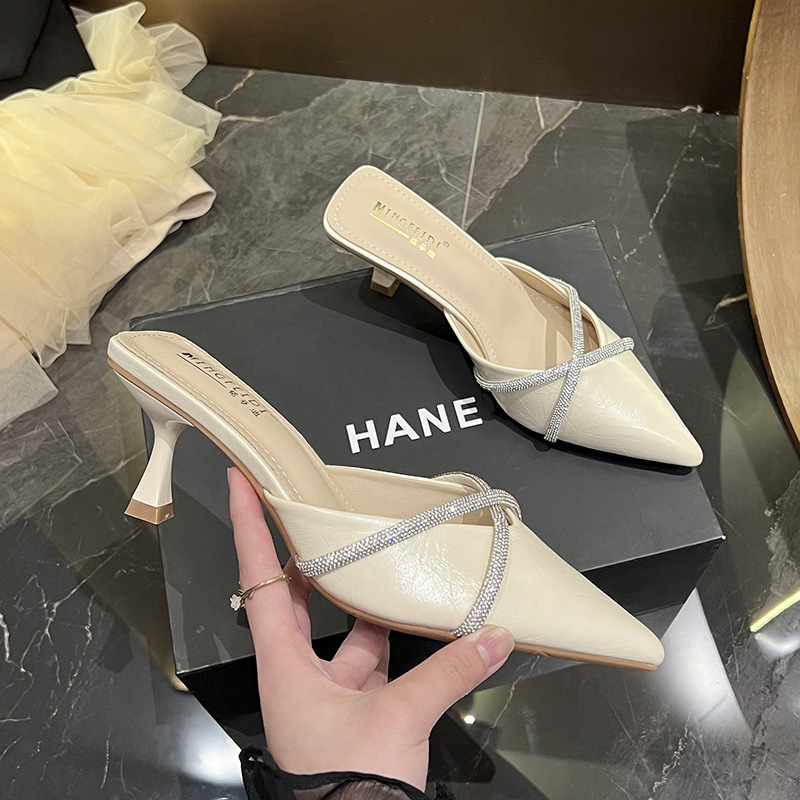 2025년 신형 바오터우 하프 슬리퍼, 여름 아우터, 슬림 힐, 여성용 하이힐 샌들, 포인티드 토, 다용도스토어 가기