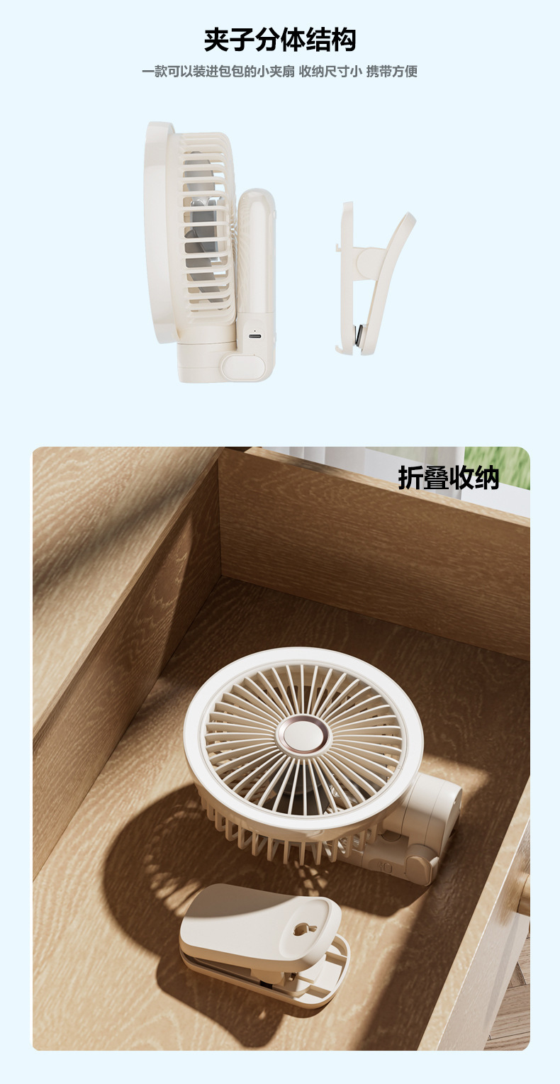 야간 조명 소형 팬 쉐이크 헤드 보조베터리 클립 다기능 접이식 휴대용 데스크탑 USB 유모차 선풍기