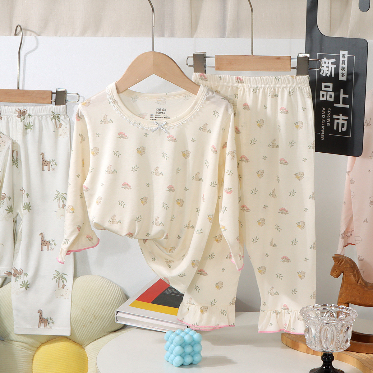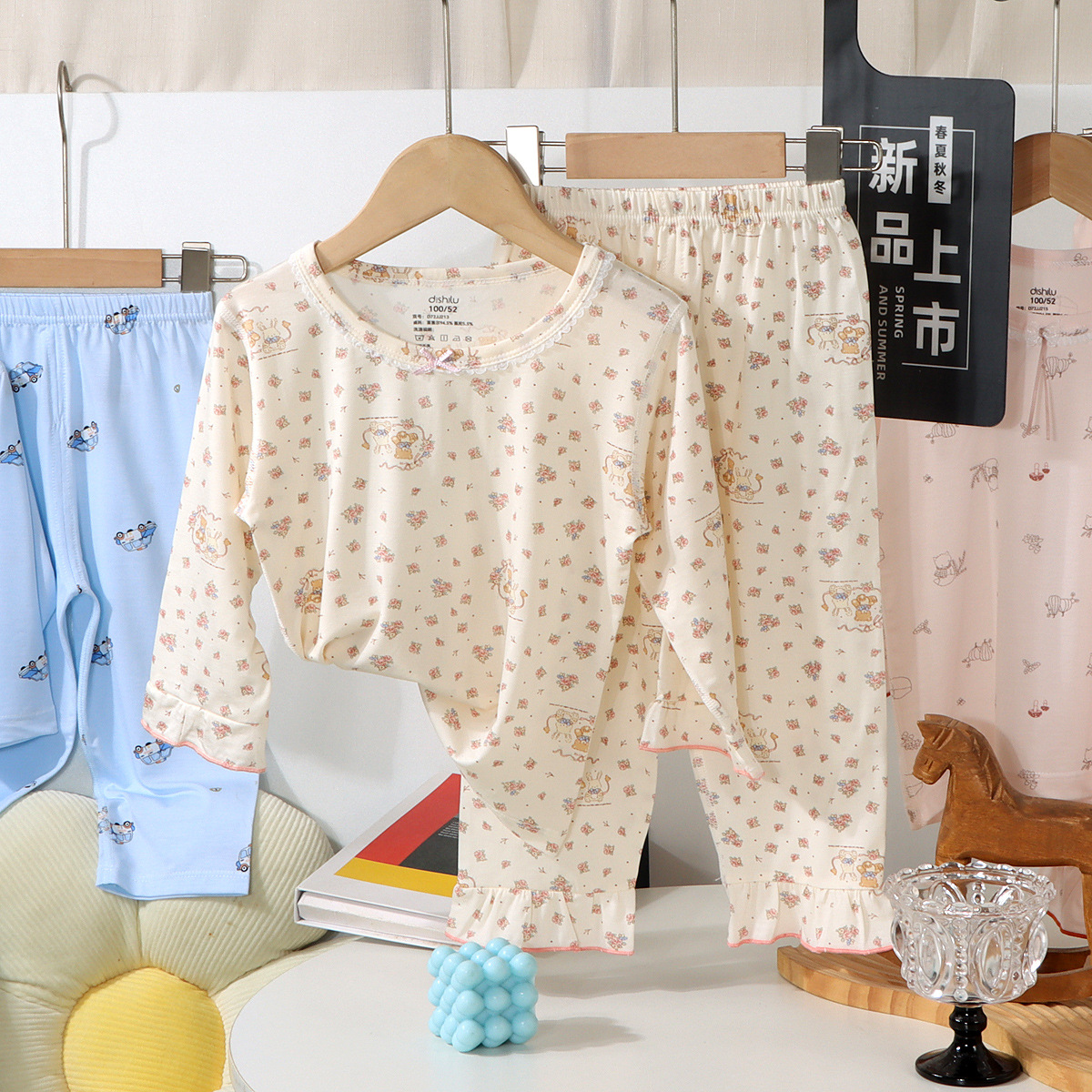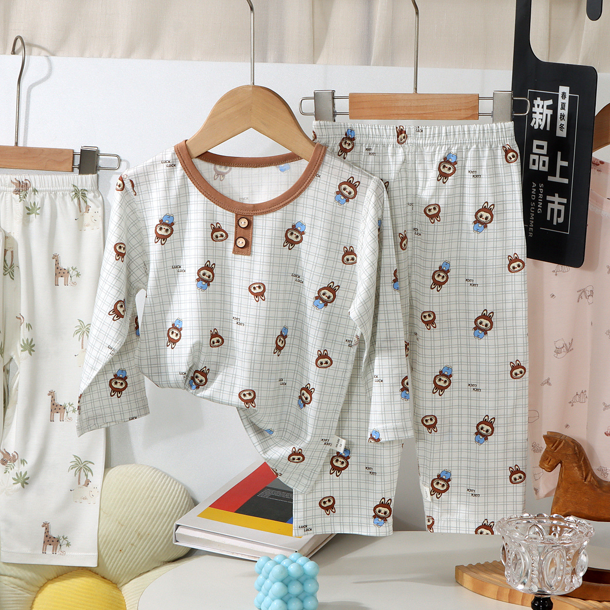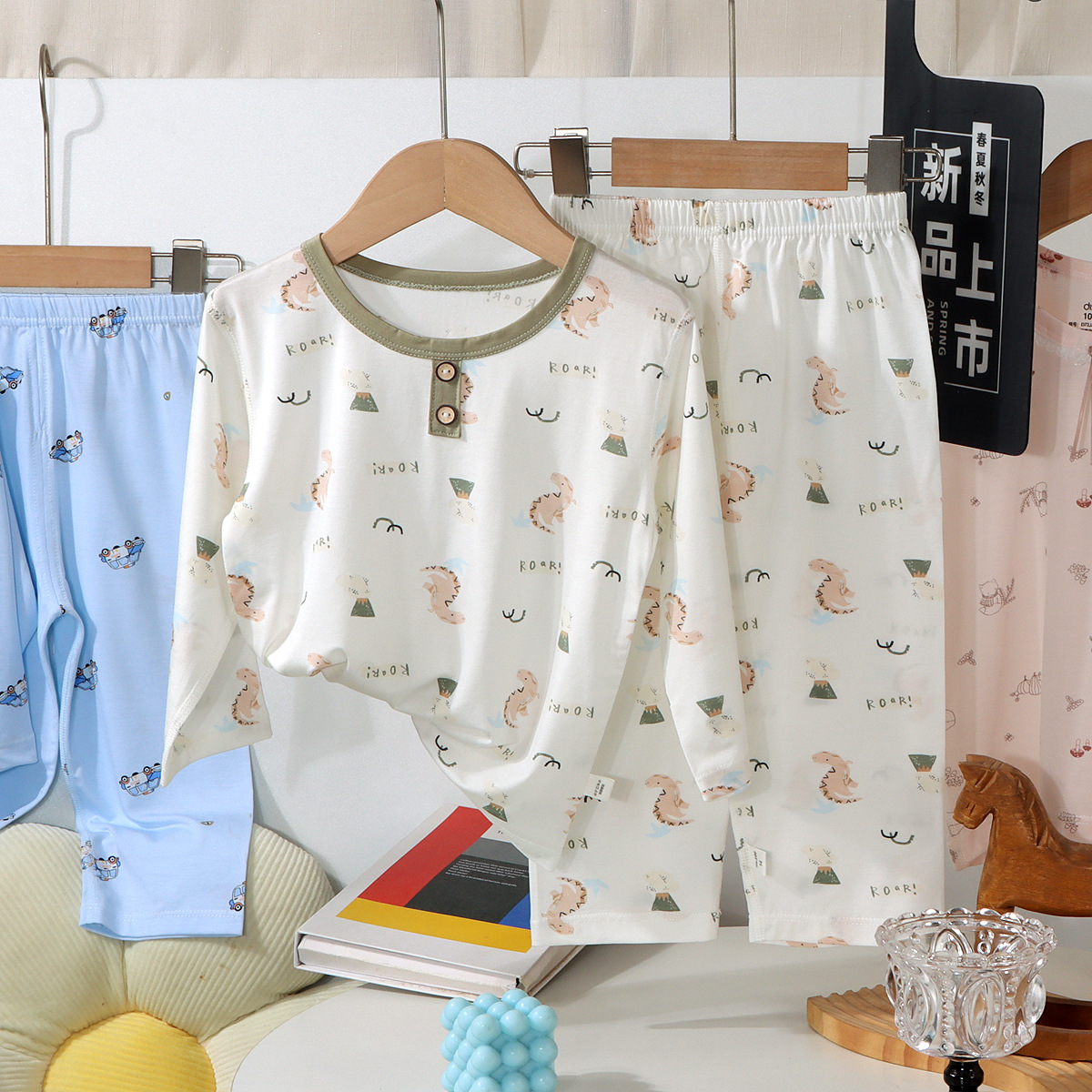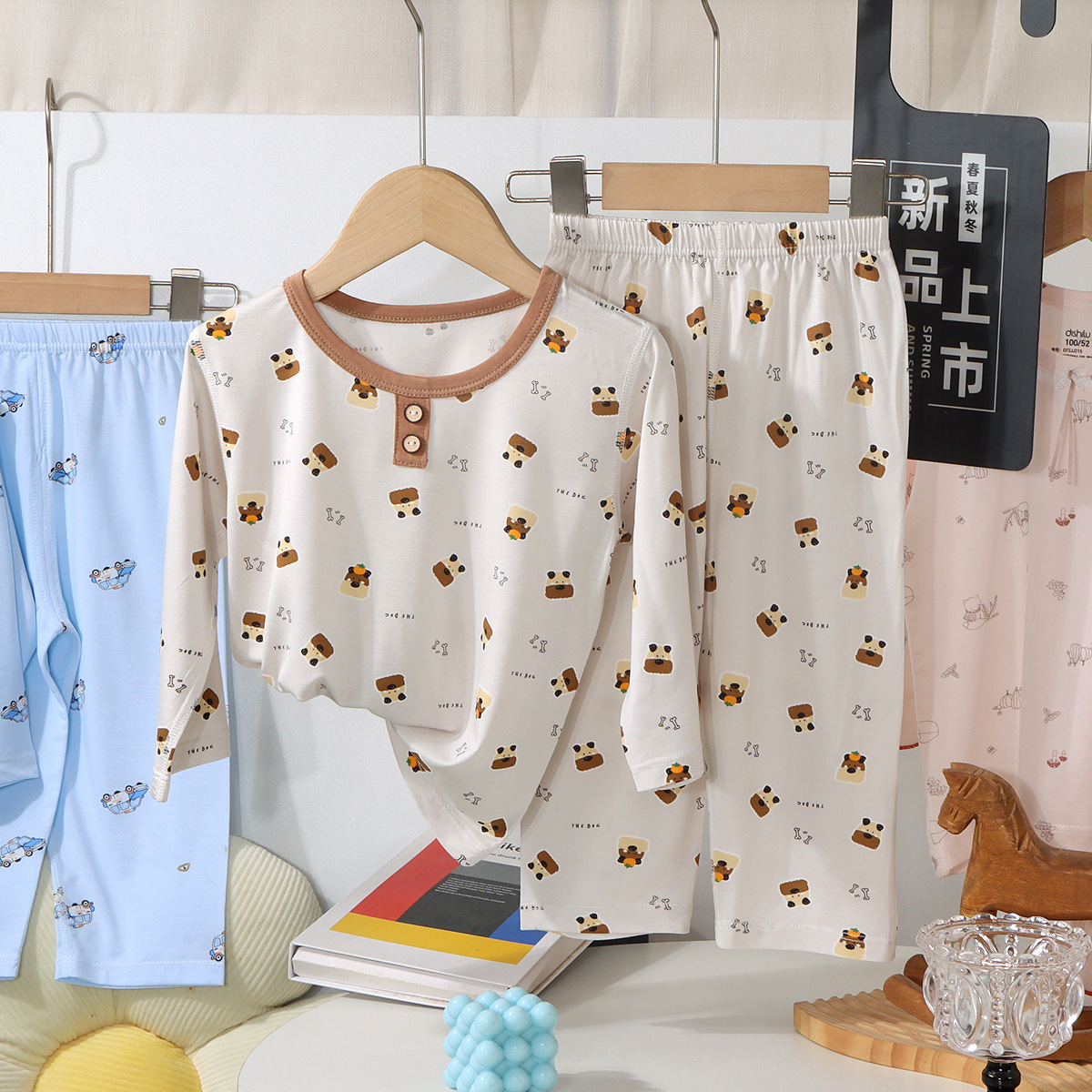 아동 잠옷 여름 얇은 텐셀 모달 리오셀 소년과 소녀 중간 길이 소매 에어컨 의류 가정 의류