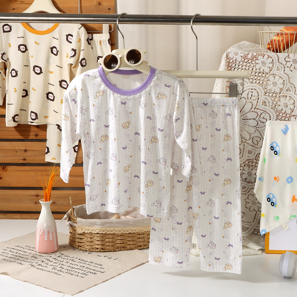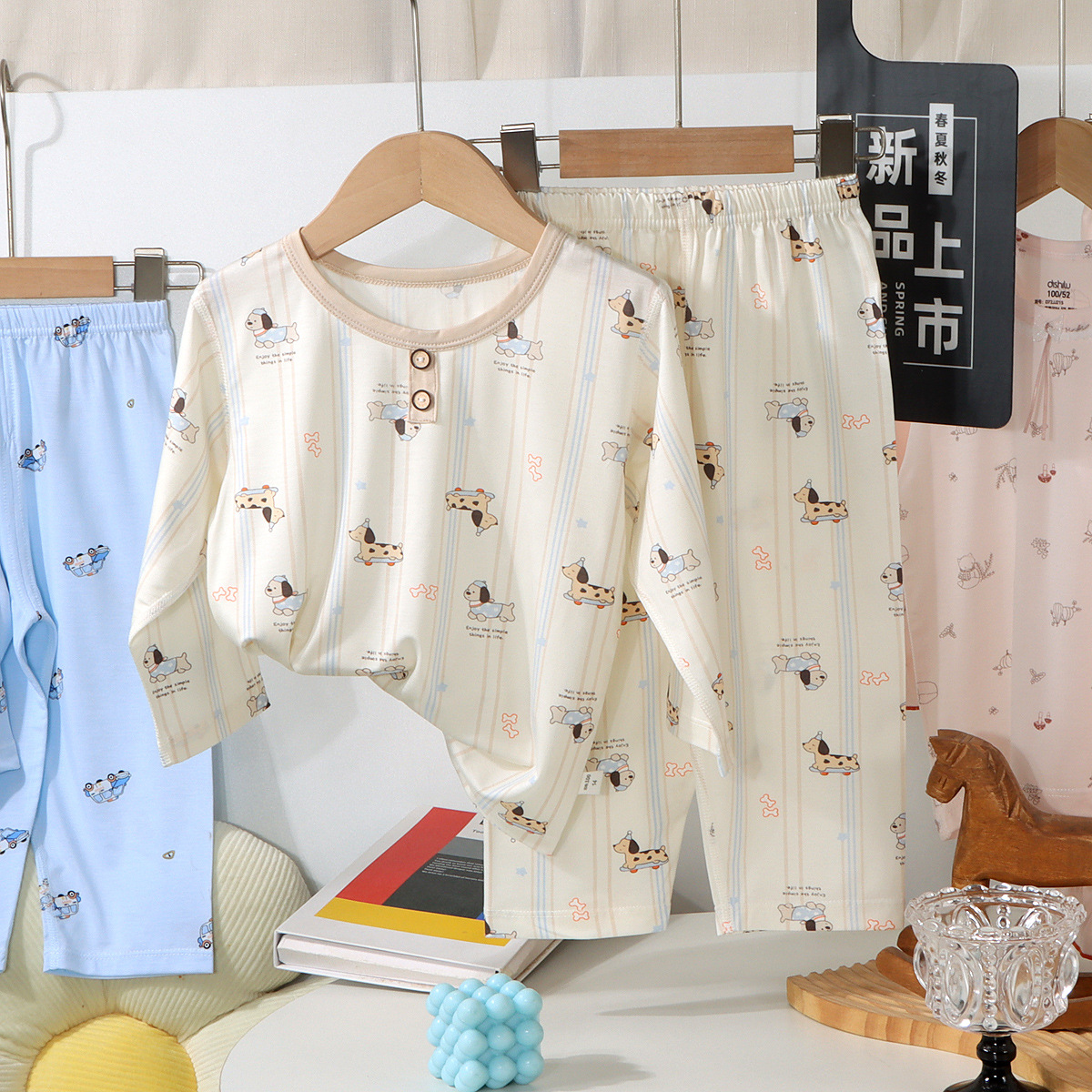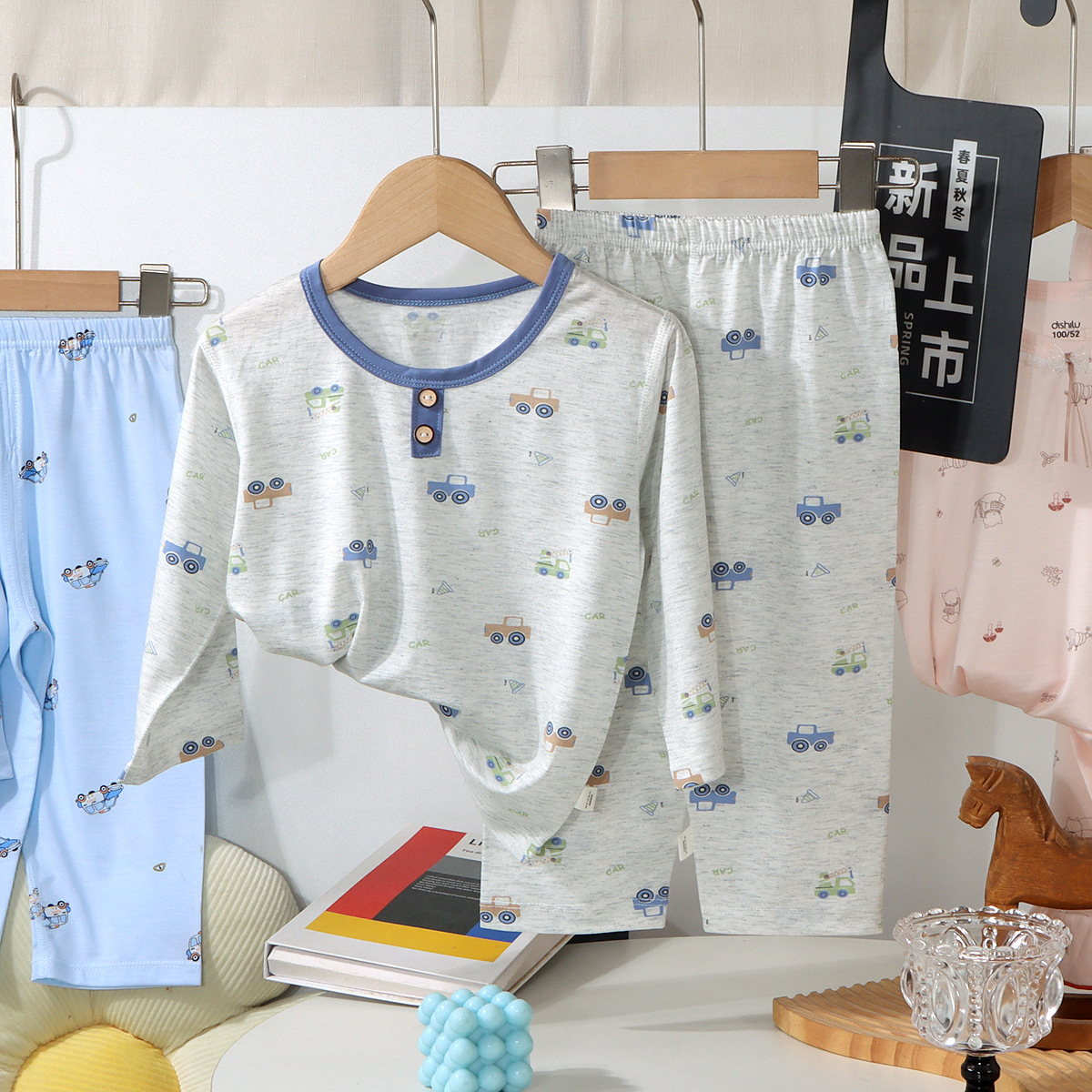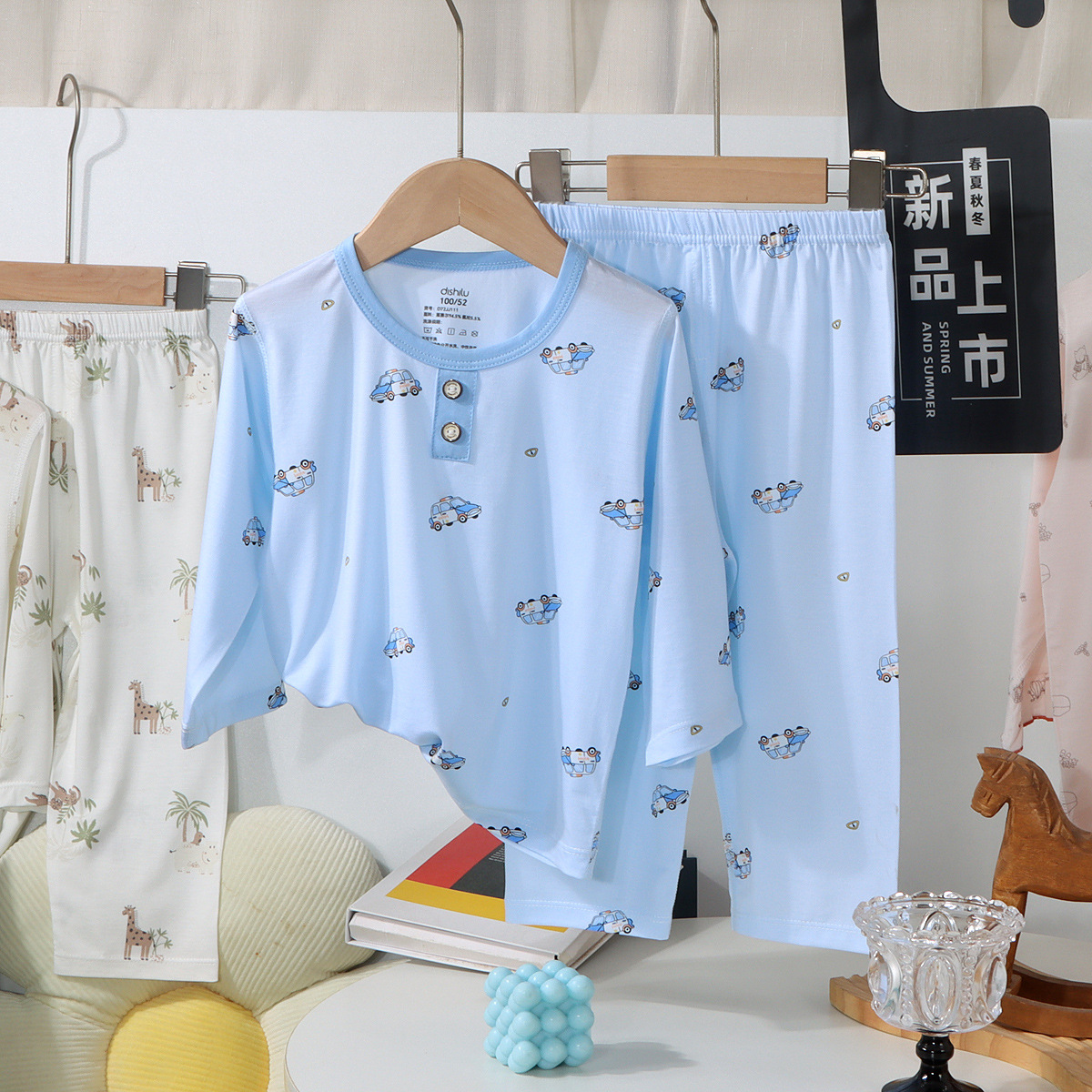 아동 잠옷 여름 얇은 텐셀 모달 리오셀 소년과 소녀 중간 길이 소매 에어컨 의류 가정 의류스토어 가기