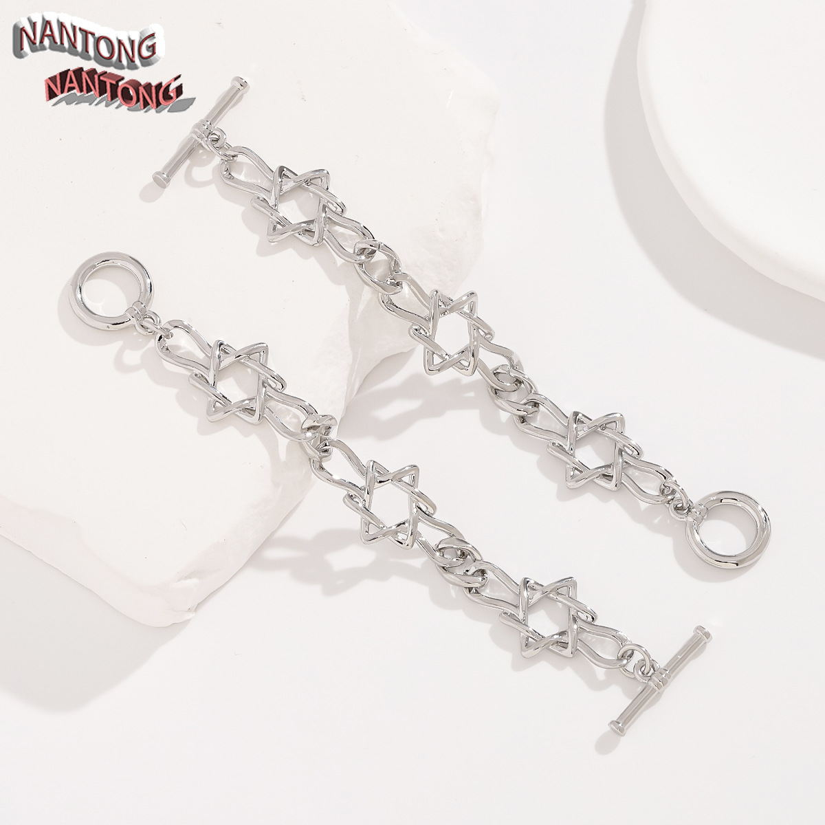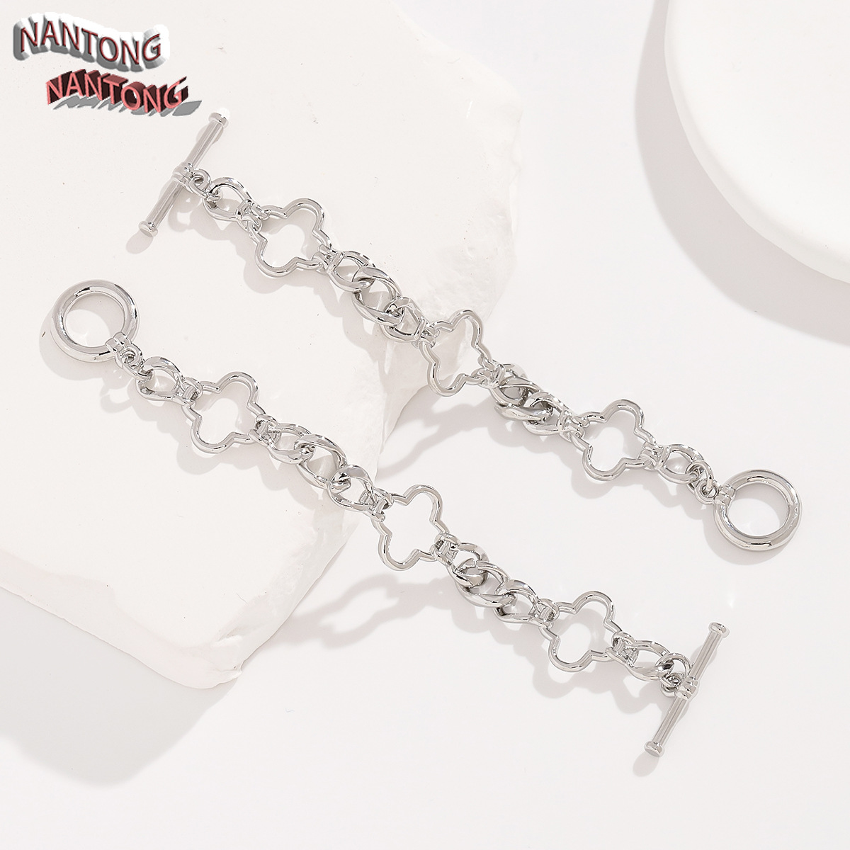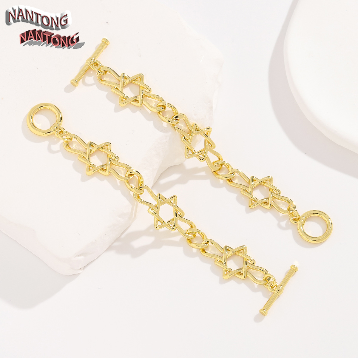 구리 도금 14K 리얼 골드 중공 육각별 긴 체인 OT 버클 4잎 꽃 팔찌 목걸이 화이트 골드 쥬얼리 버클스토어 가기
