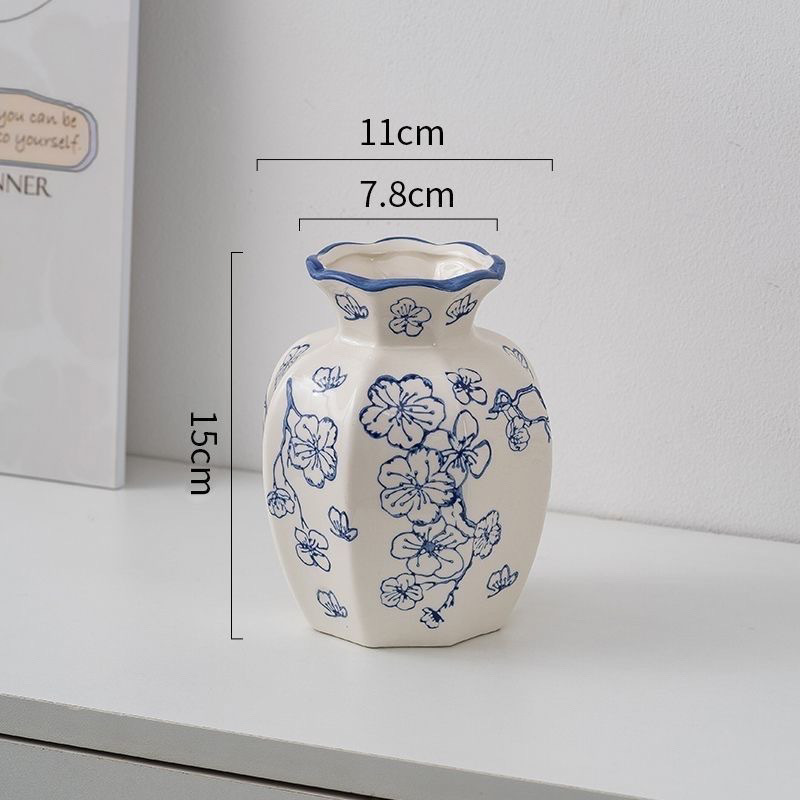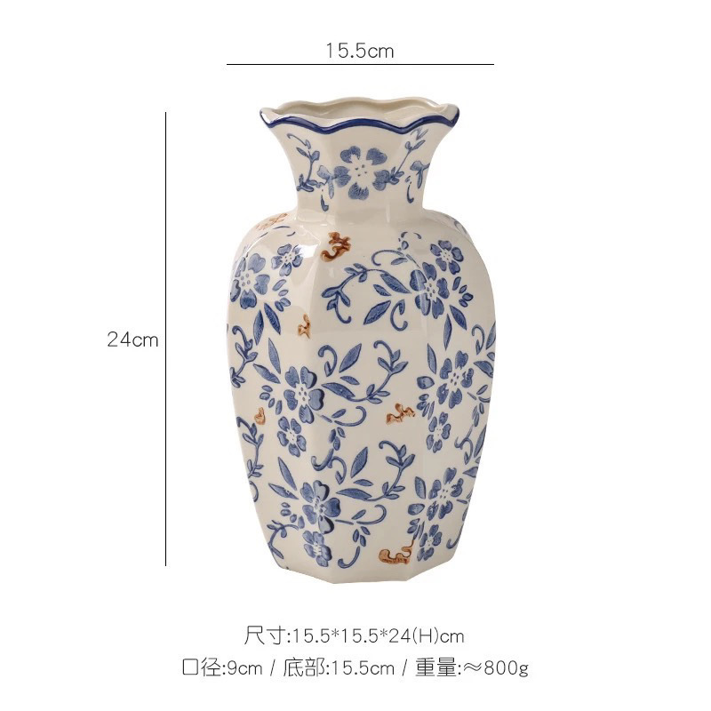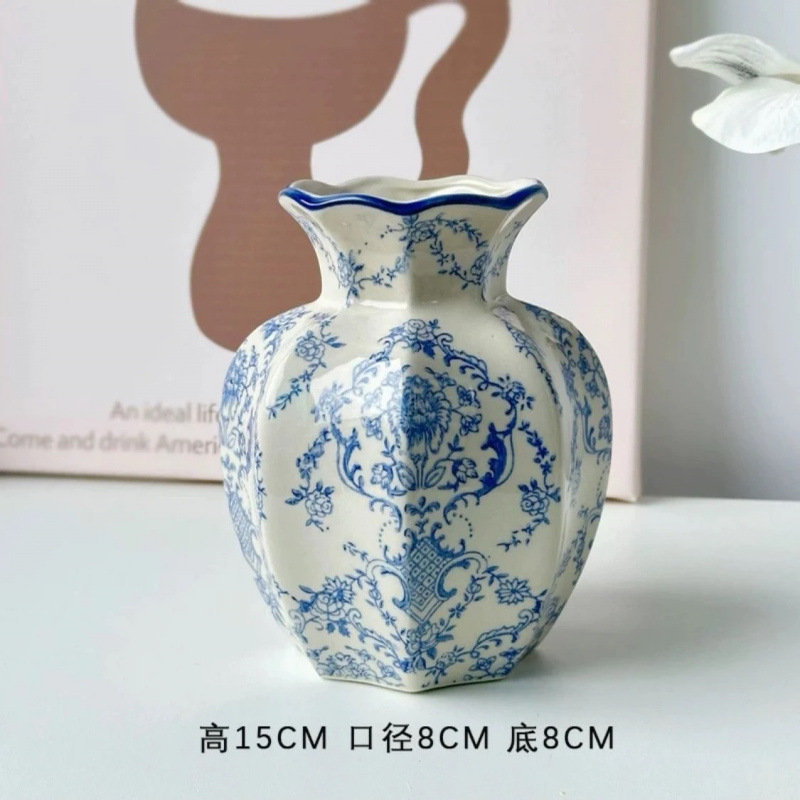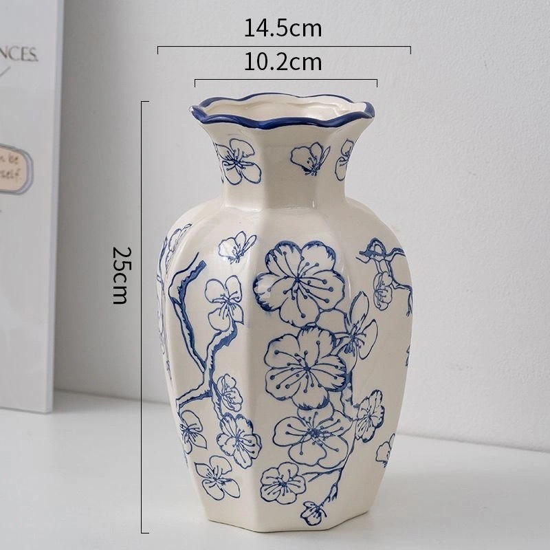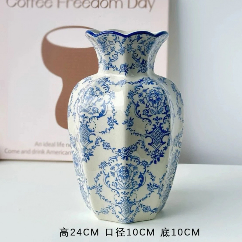 중국 고급 파란색과 흰색 도자기 복고풍 입구 세라믹 꽃병 홈 거실 꽃꽂이 장식품 수경 꽃