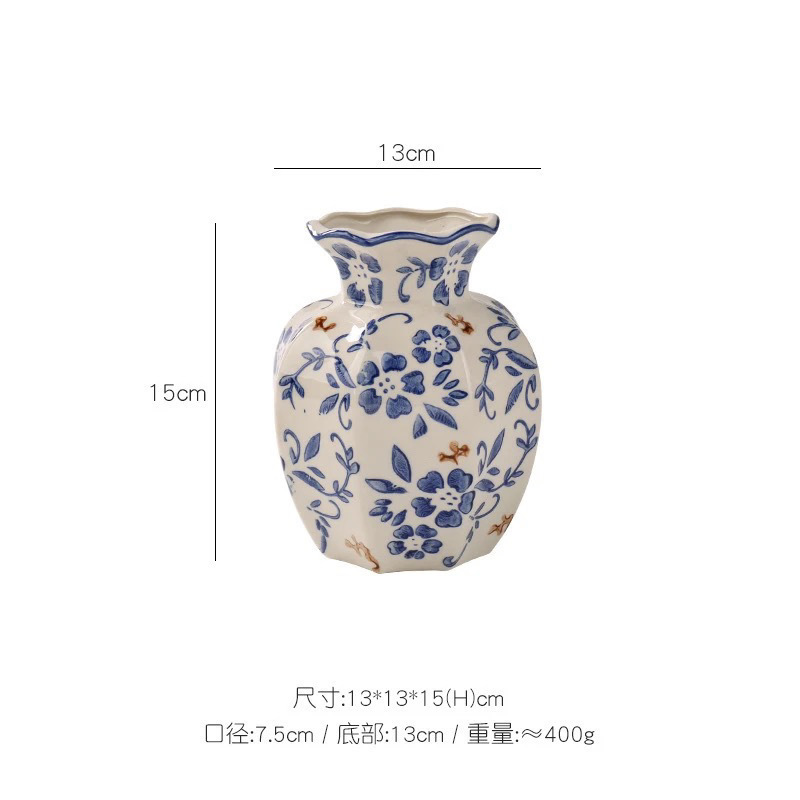 중국 고급 파란색과 흰색 도자기 복고풍 입구 세라믹 꽃병 홈 거실 꽃꽂이 장식품 수경 꽃스토어 가기