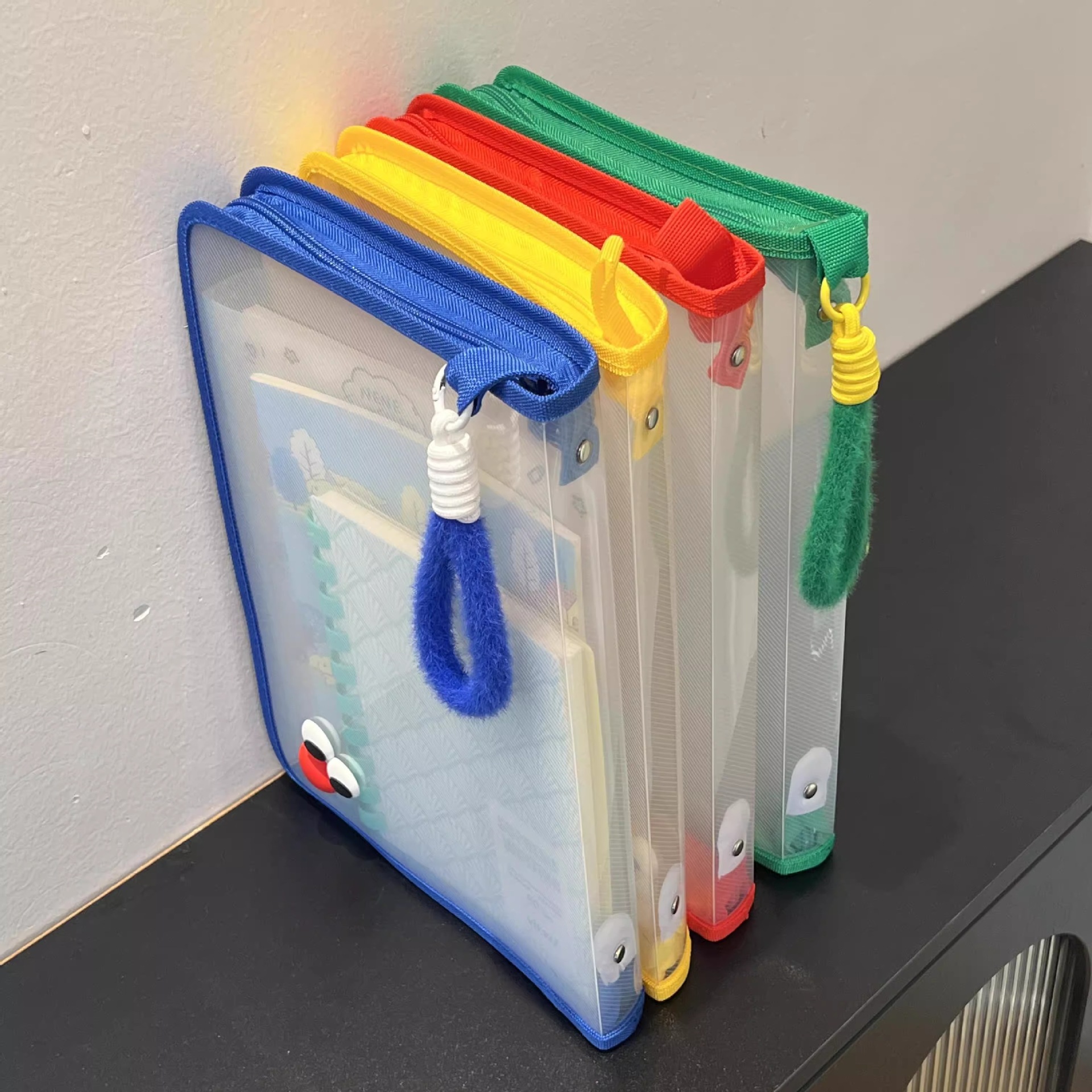 도파민 투명 A4 파일 가방 대용량 교과서 지퍼가 달린 학생 휴대용 두꺼운 방수 보관 가방
