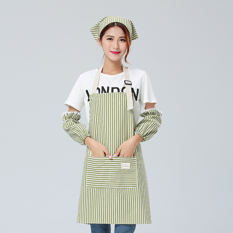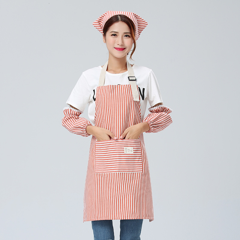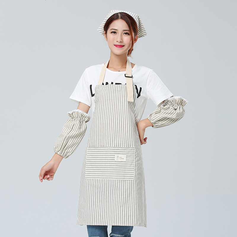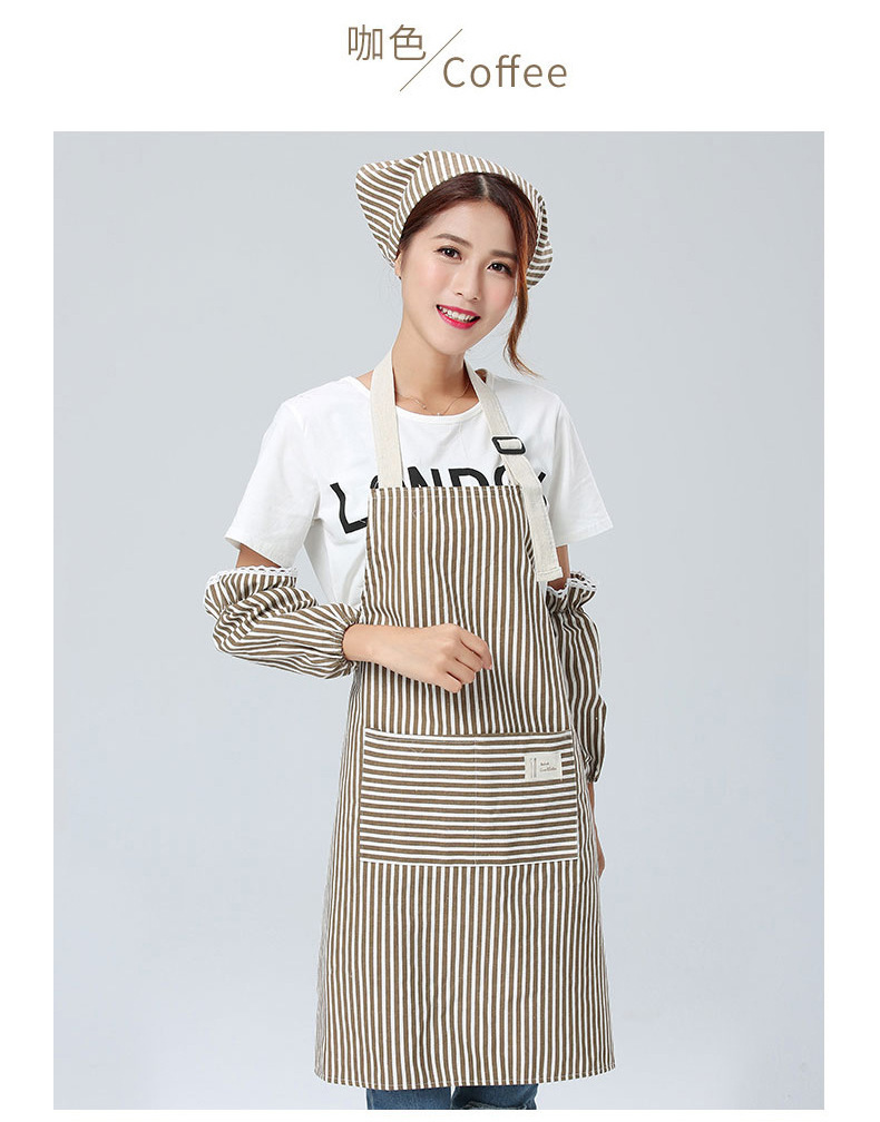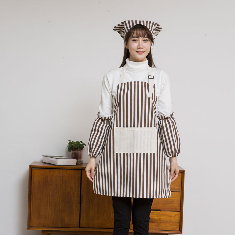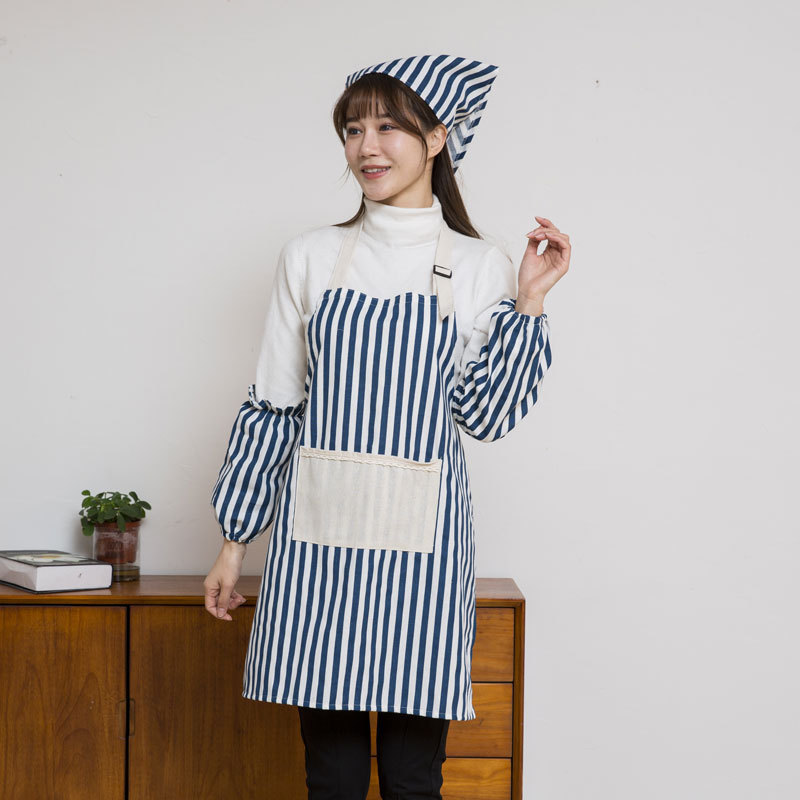 Yijia Yipin 스트라이프 앞치마 3피스 슬리브 세트 방오 모자 세트 카페 밀크티 숍 레스토랑 작업복