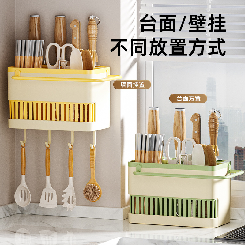 다기능 펀치없는 젓가락 튜브 벽걸이 형 가정용 배수 젓가락 케이지 주방 젓가락 케이지 칼 홀더 통합 보관함스토어 가기