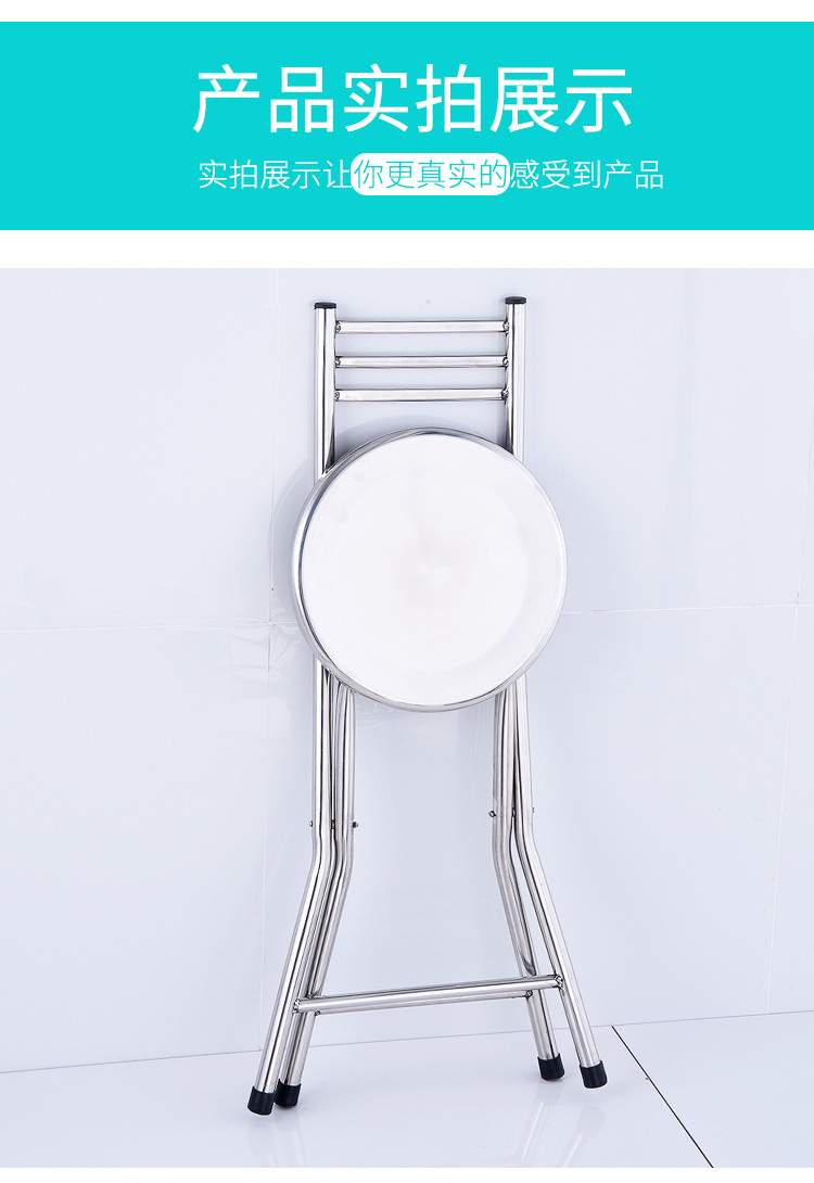 두꺼운 스테인레스 스틸 접이식 원형 의자 홈 다이닝 의자 등받이 작은 벤치 휴대용 및 보관 야외 여행 금속스토어 가기