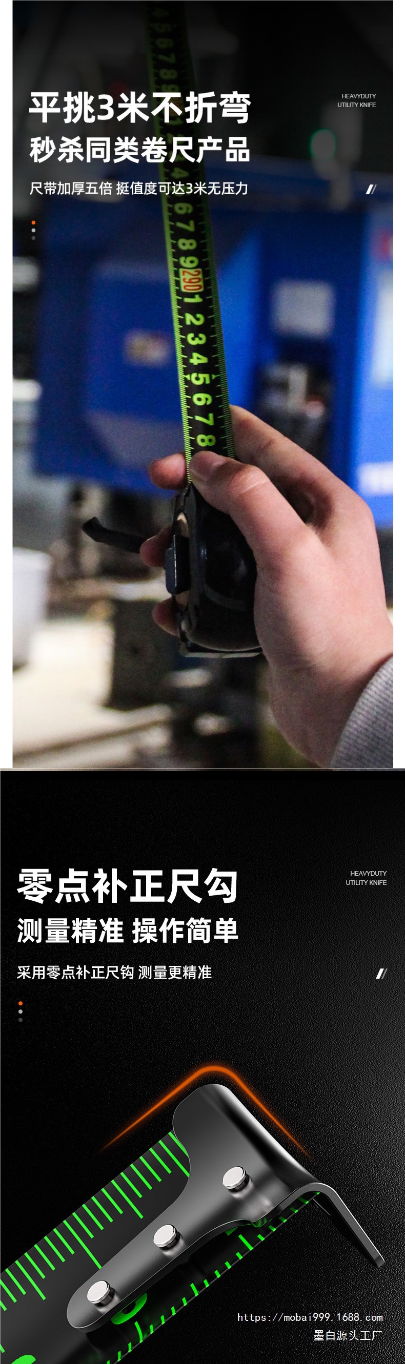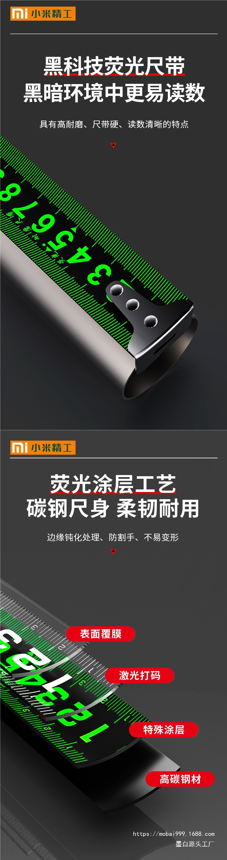 수입 줄자와 두꺼운 미터가 포함된 블랙 테크놀로지 형광 눈금자, 미터, 두꺼운 내마모성 상자 눈금자, 미터 눈금자, 고정밀스토어 가기