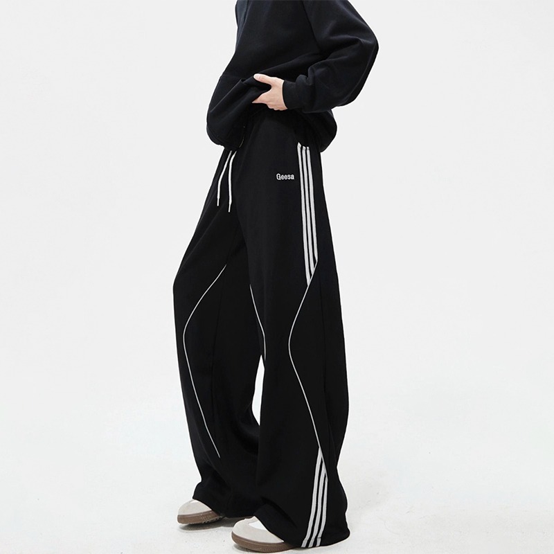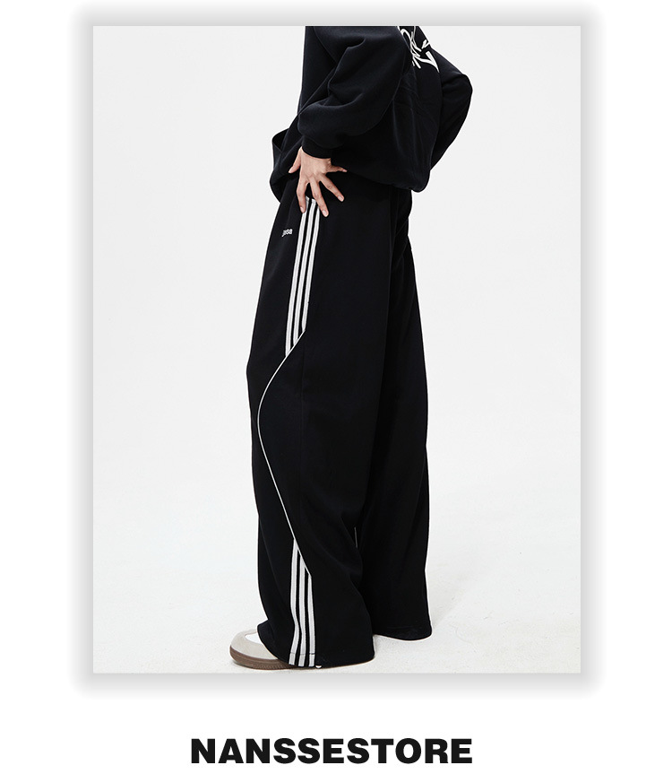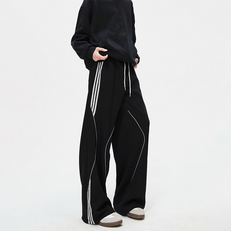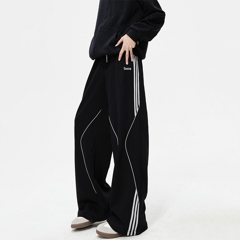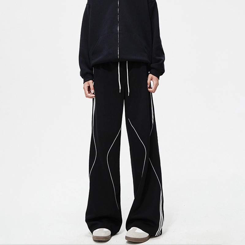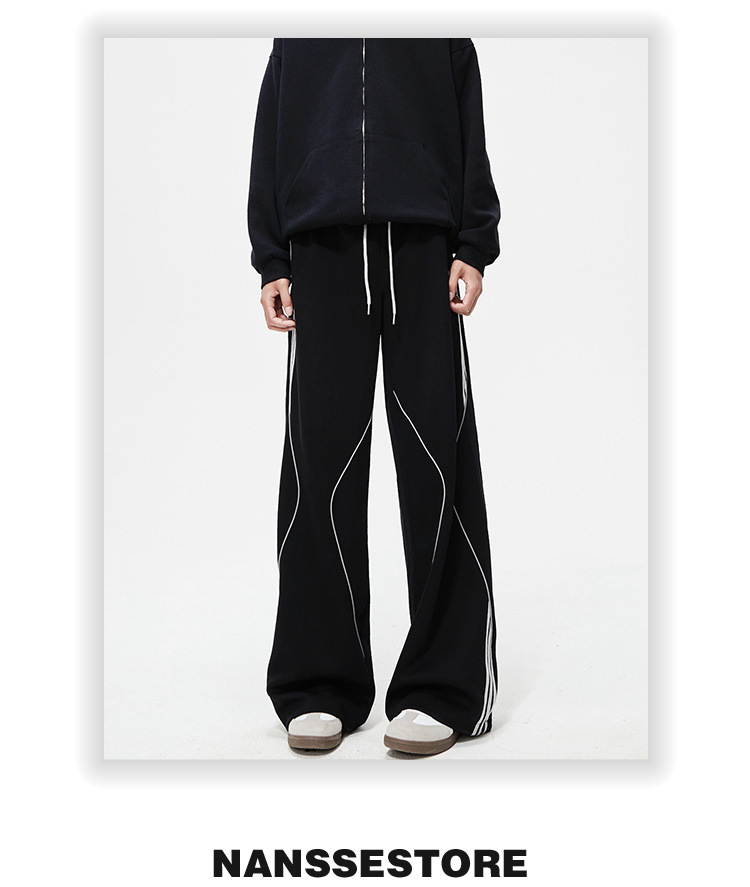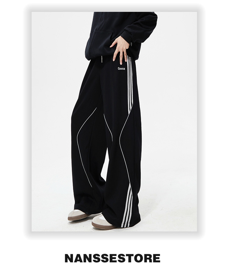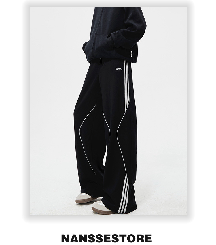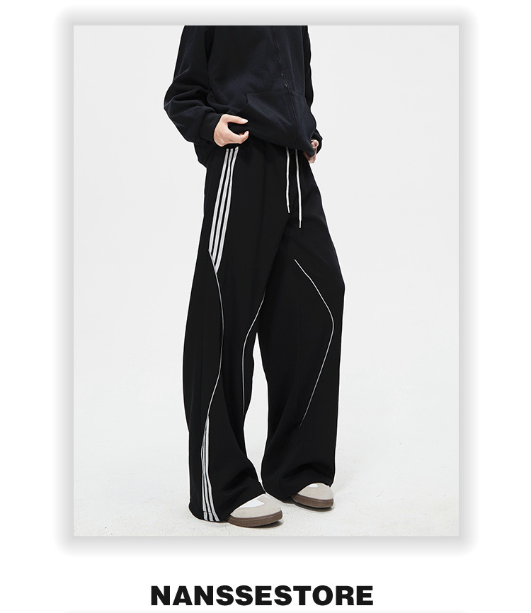 봄 신작 아메리칸 하이 스트리트 스트라이프 캐주얼 팬츠 남성용 아웃도어 기능성 팬츠 루즈 스트레이트 와이드 팬츠