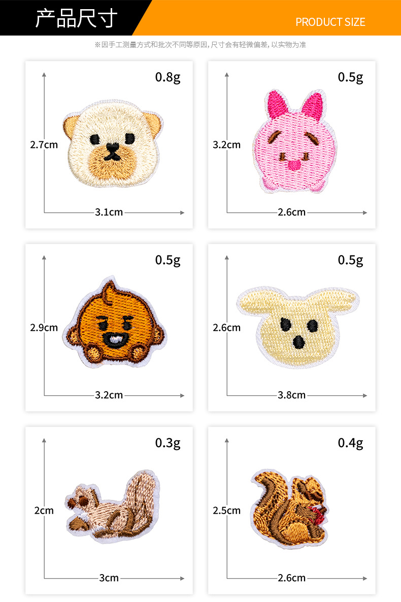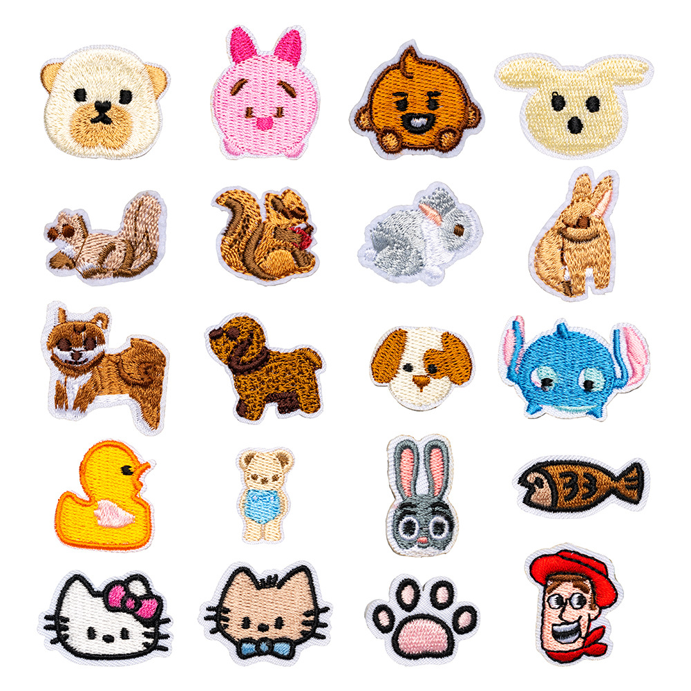 작은 크기 만화 동물 자수 패치 미니 작은 컴퓨터 자수 패치 아동 의류 신발 가방 diy 장식 패치