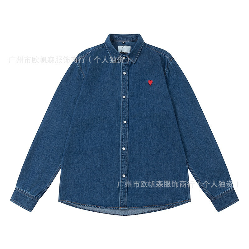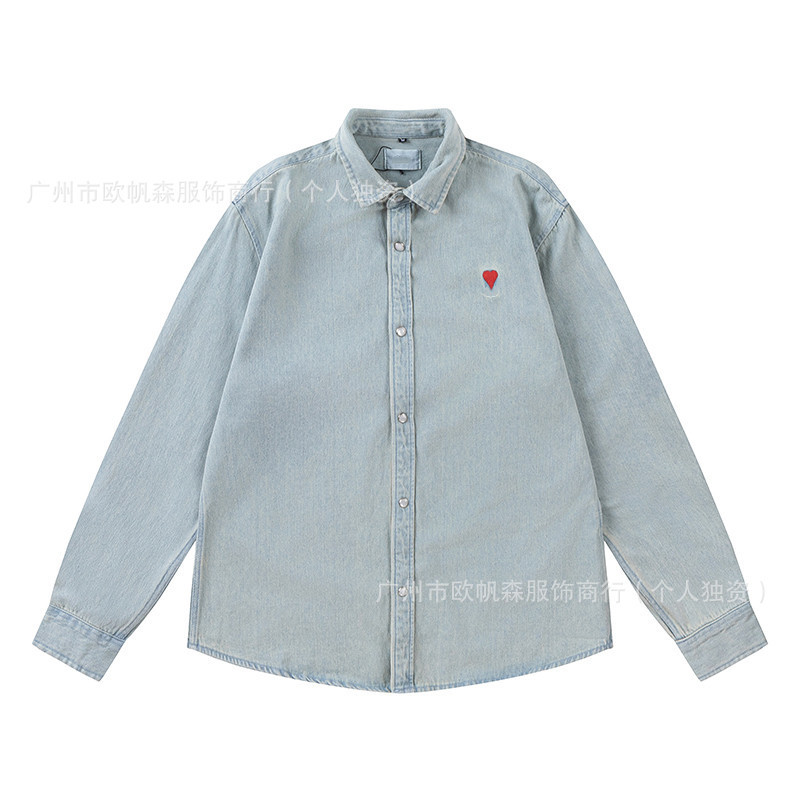 대외 무역 크로스보더 25SS 가을 미국 패션 브랜드 신작 AM1 러브 자수 캐주얼 남성 및 여성 다용도 데님 셔츠스토어 가기