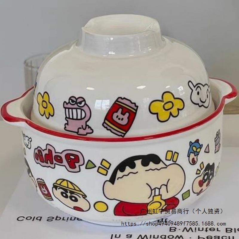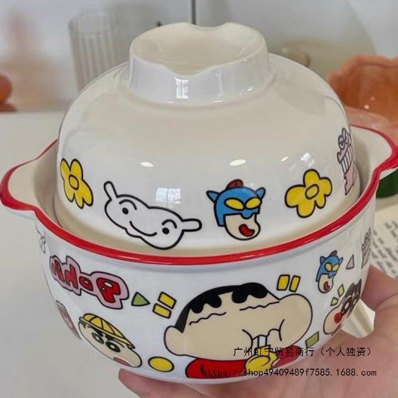 만화 양귀 크레용 신짱 국수 그릇 가정용 뚜껑이 있는 인스턴트 국수 그릇 일본식 디자인 식기 세라믹 멋져요