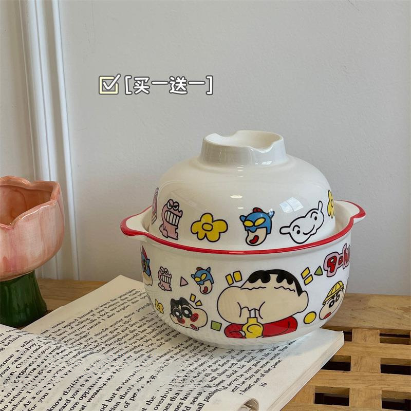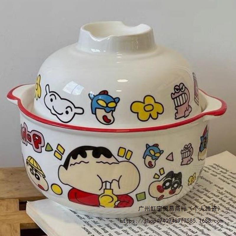 만화 양귀 크레용 신짱 국수 그릇 가정용 뚜껑이 있는 인스턴트 국수 그릇 일본식 디자인 식기 세라믹 멋져요스토어 가기
