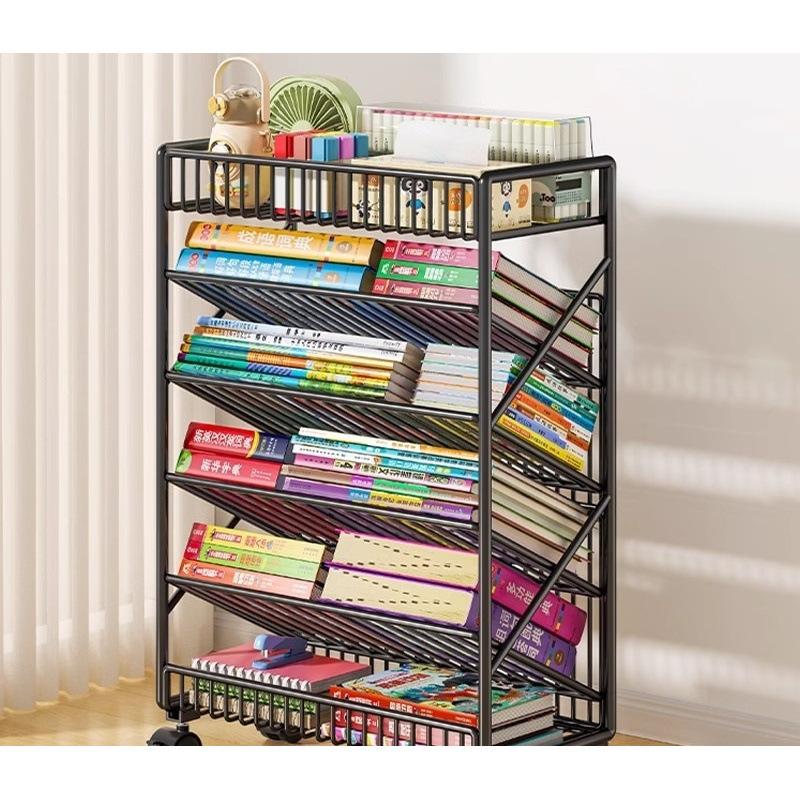 책장 바닥에서 천장까지 이동식 일체형 벽걸이형 간단한 어린이 책장 바퀴가 달린 작은 철제 수납선반스토어 가기